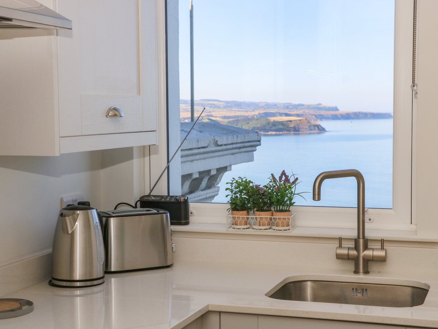 Holiday home The living areas in this first-floor apartment consist of an open-plan kitchen, dining area and sitting area with an electric oven and hob, microwave, fridge with ice box, dishwasher, Smart TV, selection of books and an electric fire. The bedrooms consist of a king-size and a twin, along with a shower room. Outside there is permit parking. You'll find a shop in 0.3 miles, a pub in 0.1 miles, and the beach in 0.8 miles. This is a pet-free and smoke-free property. WiFi, fuel, power, bed linen and towels are all included in the price. Apartment 6 is well-positioned to explore the coast and country of North Yorkshire. Note: The property is accessed via a flight of stairs.