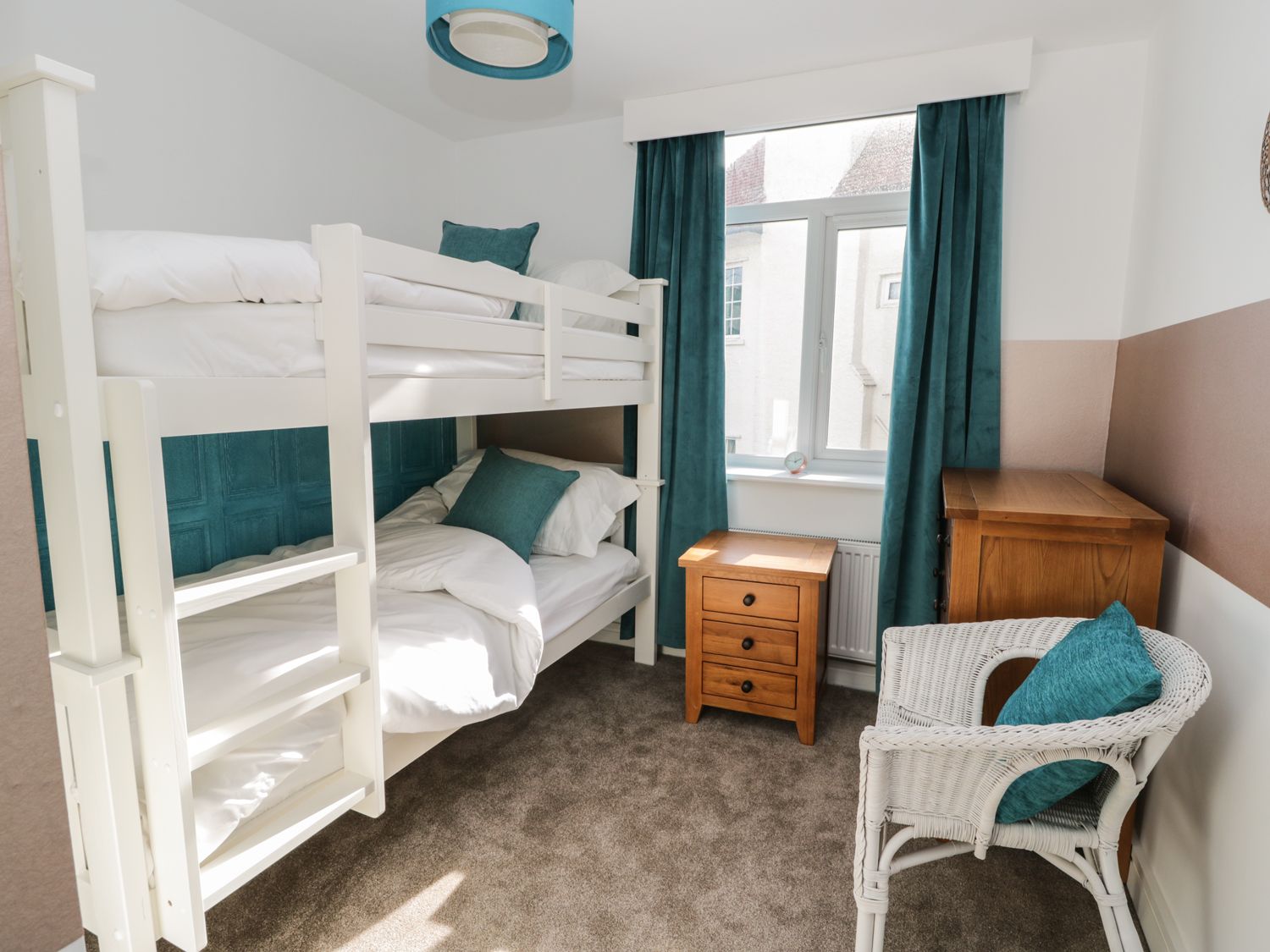Apartment 3 offers first floor accommodation and sits within reach of the amenities and attractions of Scarborough in North Yorkshire. The two bedrooms in the property are made up of a double with an en-suite and a bunk room, along with a family bathroom, it can sleep up to four people. Its interior also contains an open-plan living area including a kitchen, a dining area and a sitting area with an electric fire, and a shared utility. To the outside you will discover a designated parking space for one car. Apartment 3 is a contemporary apartment in a superb coastal location. Note: One well-behaved dog welcome.