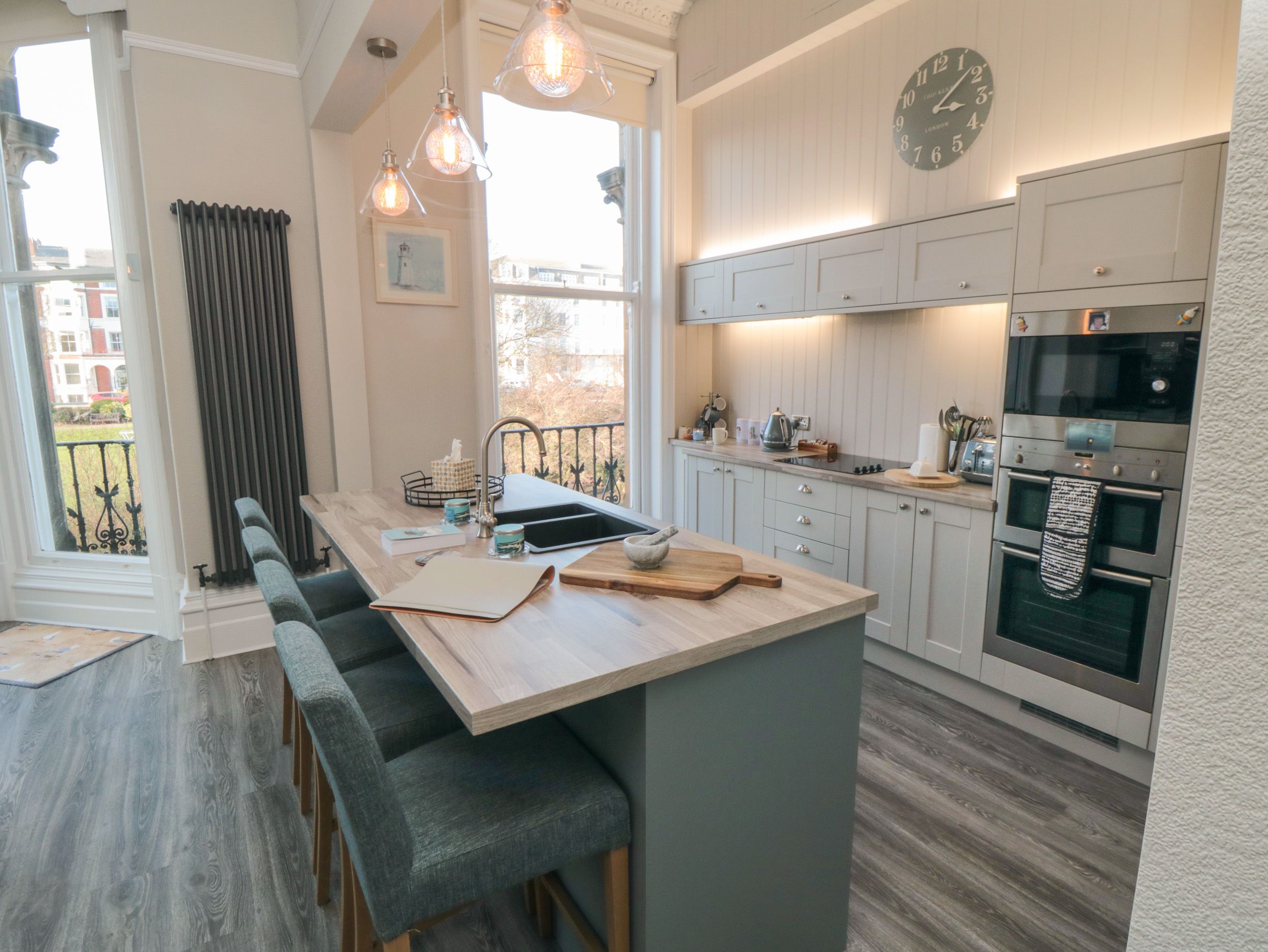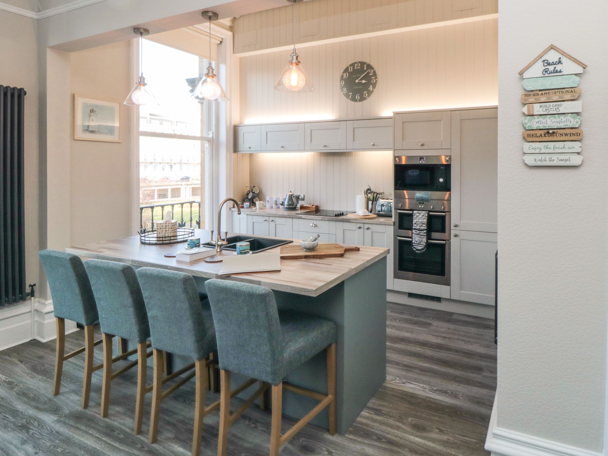 Holiday home Archie's Anchor is a first floor apartment in a converted Victorian property in Scarborough, North Yorkshire. Hosting two bedrooms; a king-size double with en-suite, a small double and additional Z bed with memory foam mattress, and a bathroom, this property can sleep up to four people. Inside you will also find a kitchen, and a sitting room with dining area, balcony and electric stove. To the outside is roadside permit parking at the front of the property and on nearby streets. Located in a wonderful setting with lovely views over the sea and castle, Archie's Anchor is a delightful cottage in England.