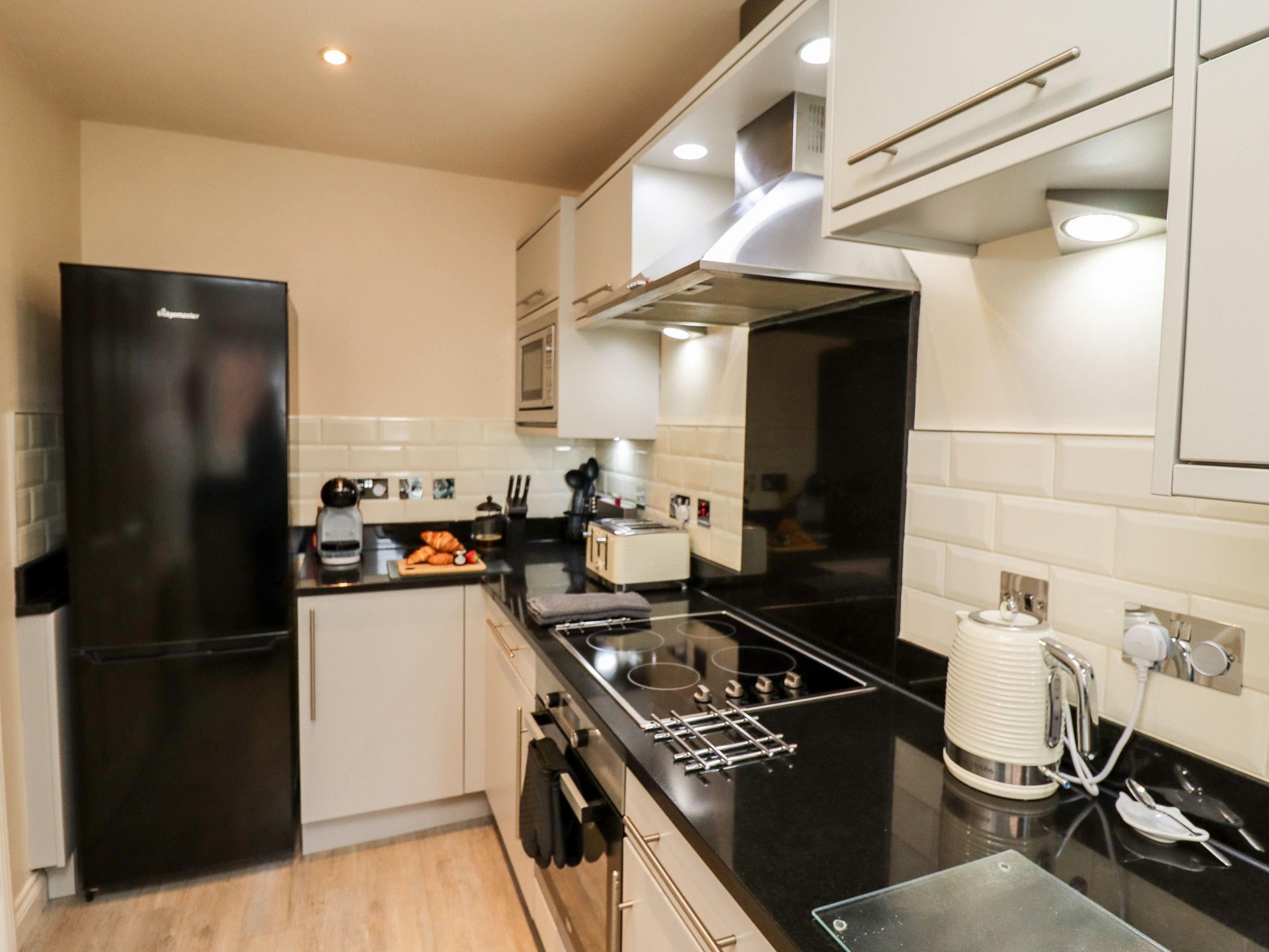 The separate kitchen is very stylish and incorporates an electric oven, ceramic hob, microwave, fridge, freezer, washing machine and dishwasher.