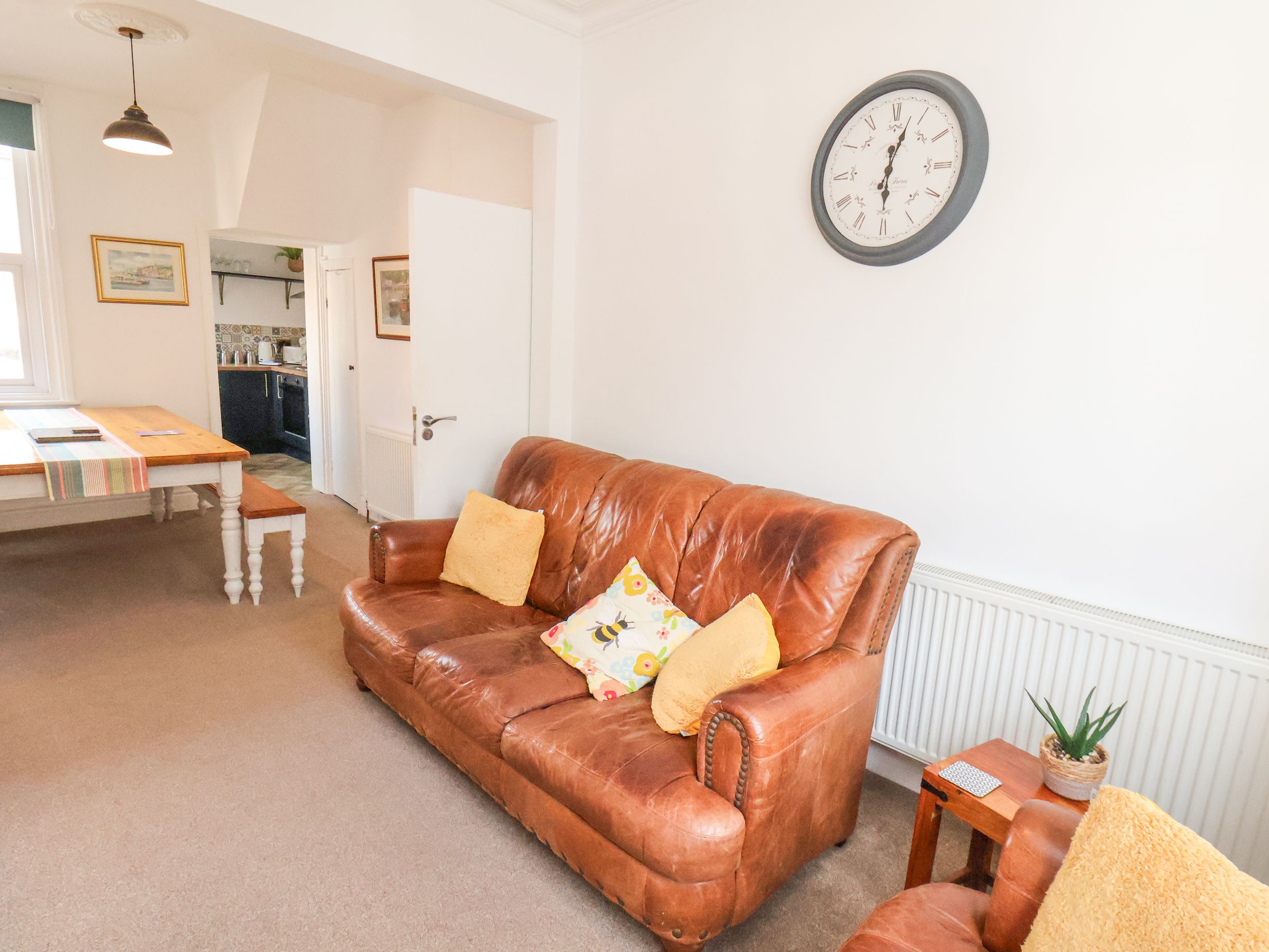 Over three floors. Four bedrooms: 2 x first-floor double, 1 x second-floor twin, 1 x second-floor single. First-floor bathroom with bath, shower, over, basin, heated towel rail, and WC. Open plan living space with kitchen, dining area and sitting area