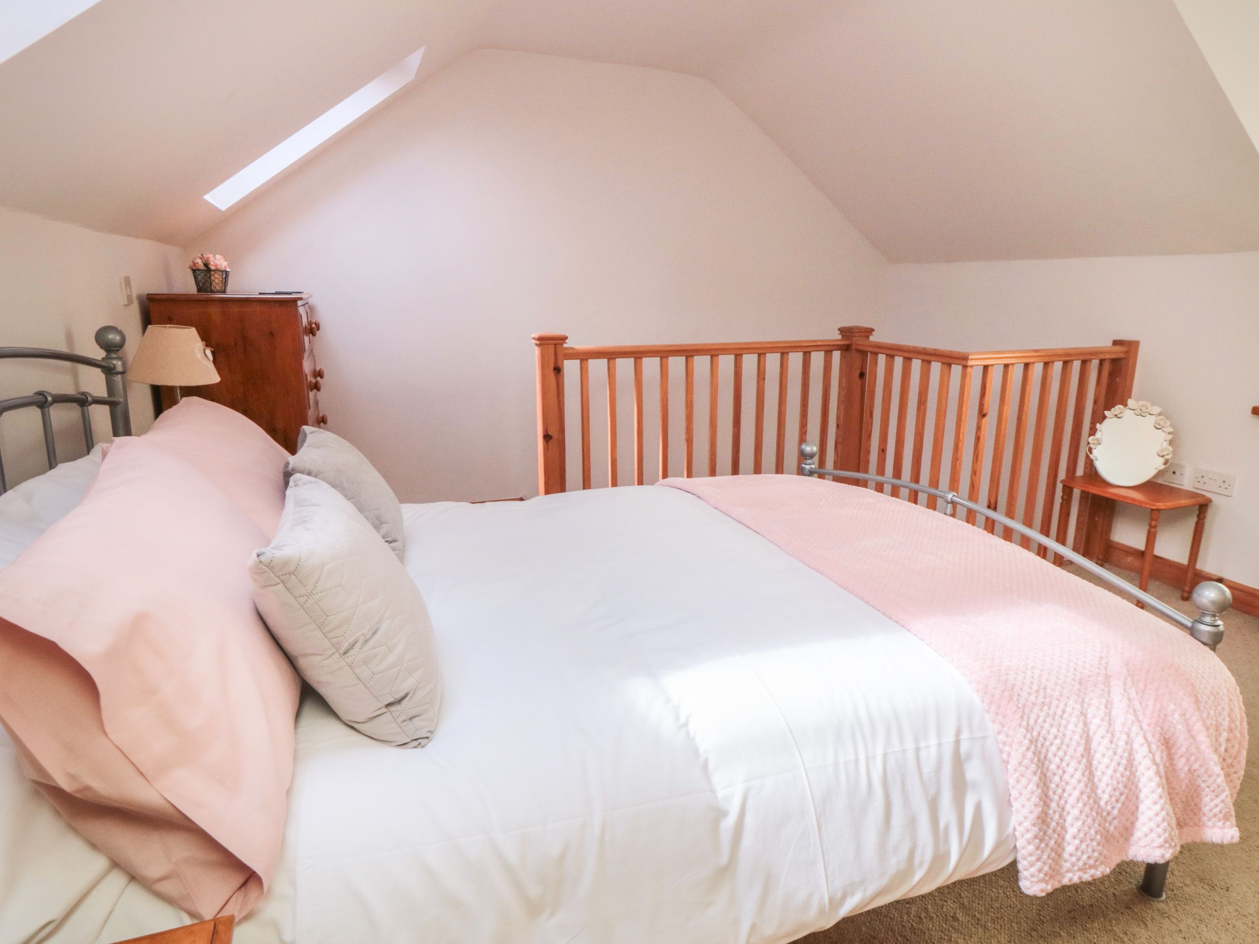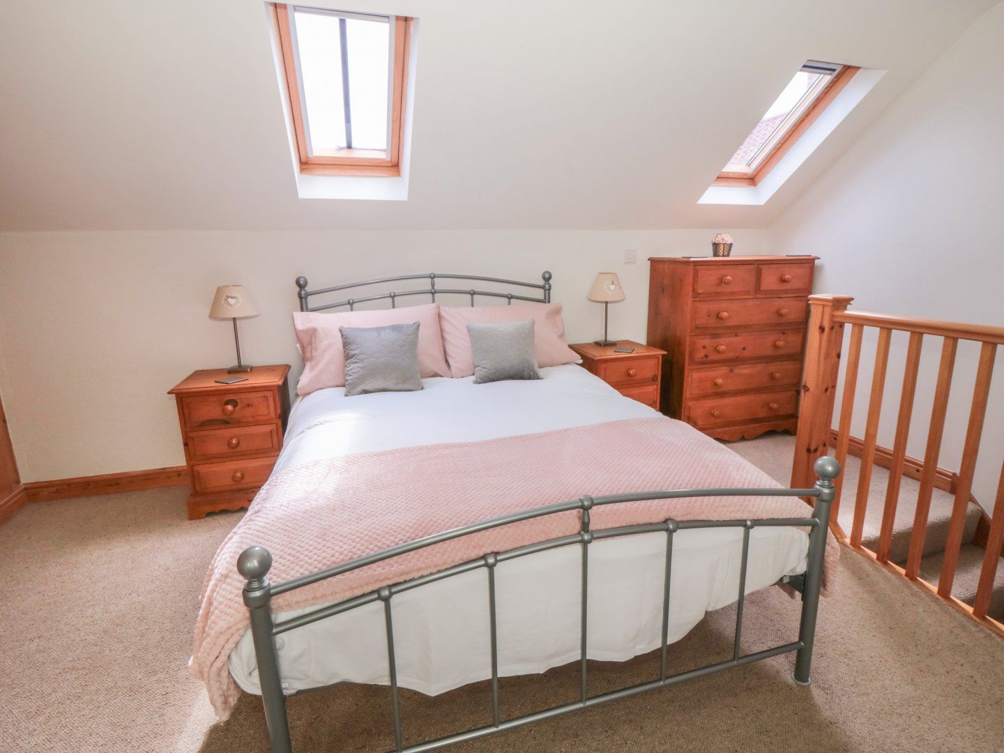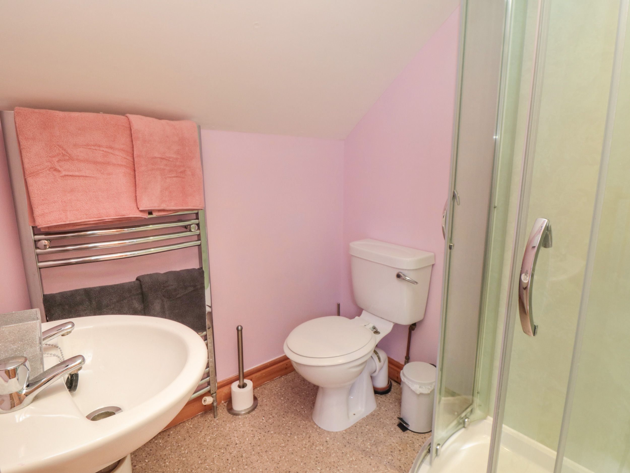 Two bedrooms: 1 x double with en-suite walk-in shower, basin, heated towel rail and WC, 1 x ground-floor twin with en-suite walk-in shower, basin, heated towel rail and WC. Kitchen/diner. Sitting room
