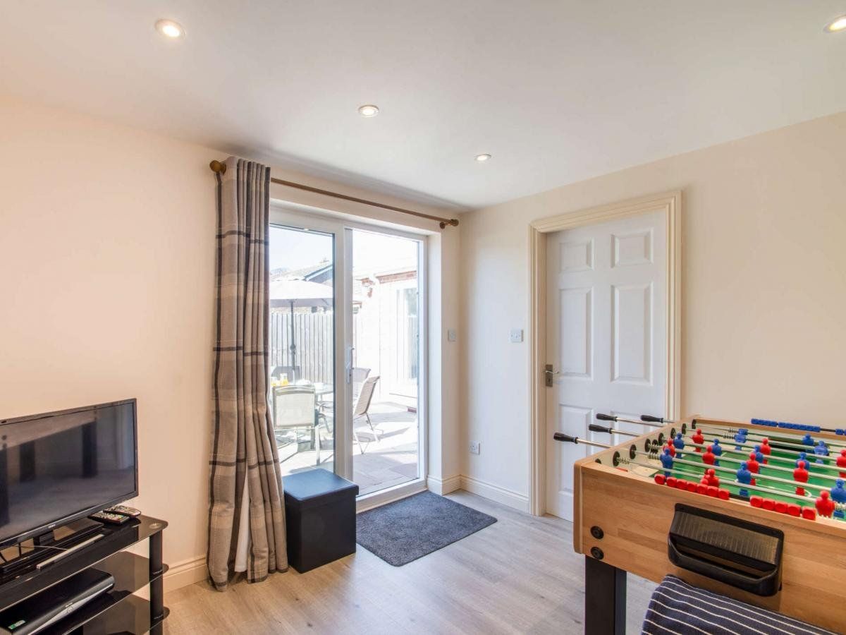 Ideal for families, it features an open-plan layout, a sun trap garden, and a games room for the young at heart! Home-from-home style seamlessly blends with modern convenience in this delightful holiday home. The inviting hallway welcomes you to store sandy shoes and coats before entering into the open-plan lounge/kitchen/diner.