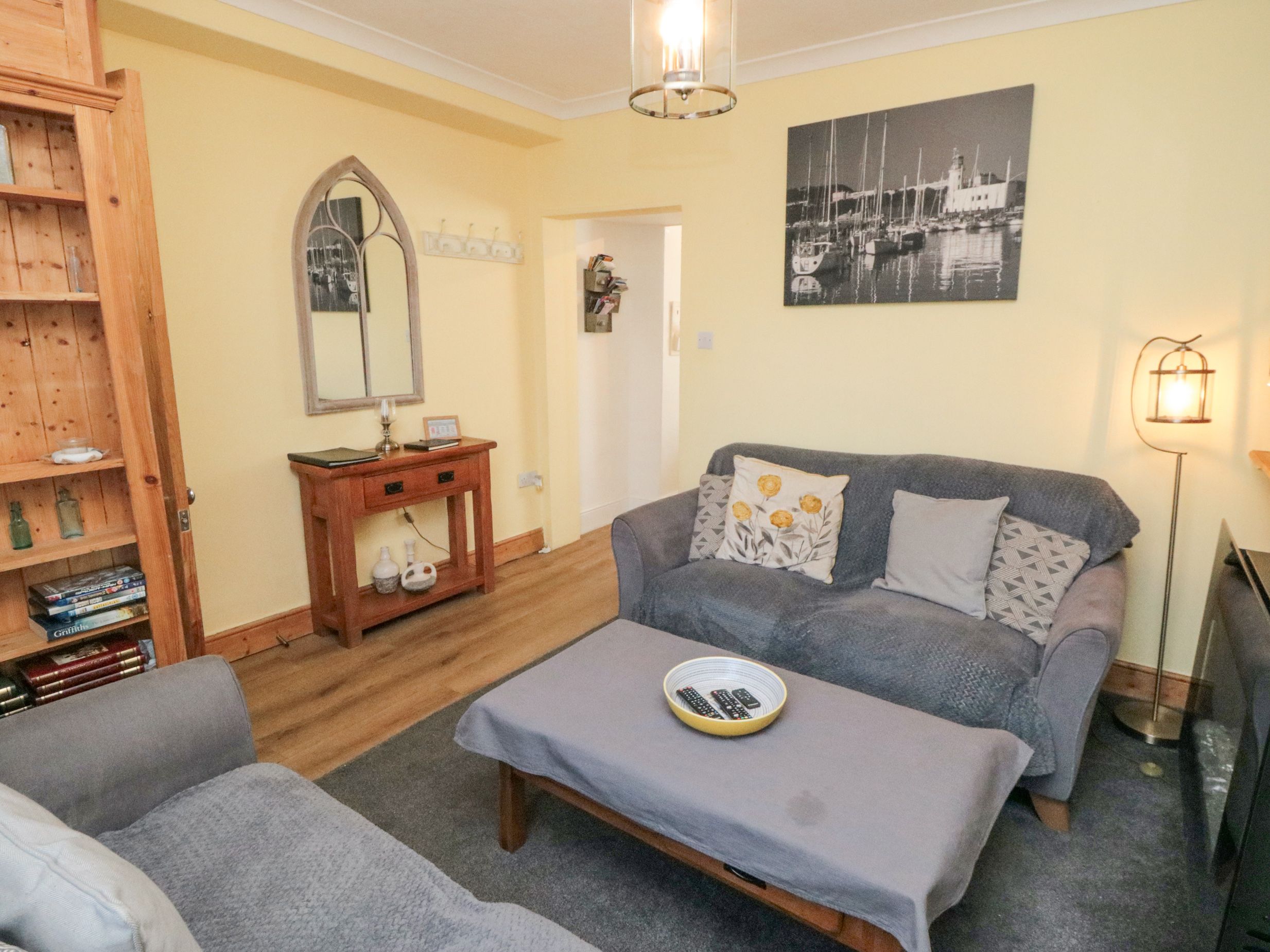 Gas central heating, electric fire. Electric oven, gas hob, Tassimo pod coffee machine, microwave, fridge/freezer, washer/dryer. Smart TV with Freeview, a small selection of books and games and WiFi. Travel cot and highchair. Scratch card for roadside parking for 1 car opposite property and in surrounding streets (1st come, 1st served basis). Private patio area with table and chairs. One dog is welcome, however, if you would like to bring a second dog, please contact us first. Fuel and power inc. in rent. Bed linen and towels inc. in rent. Sorry, no smoking. Shop and pub 5 mins walk. Beach 10 mins walk. Due to the age of the property, it may not be suitable for people with limited mobility.