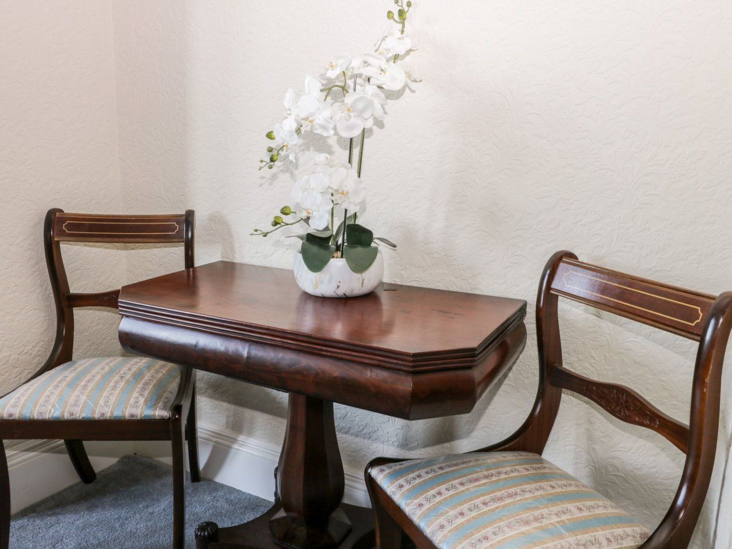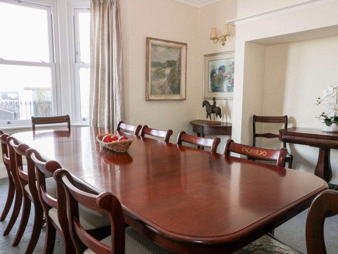Holiday home The living areas include a kitchen with an electric oven and hob, fridge/freezer, microwave, washing machine and dishwasher, a dining room with seating for 12, a first-floor sitting room with a Smart TV, and a second-floor snug. The bedrooms consist of a second-floor four poster bed with en-suite shower room, a second-floor king-size with en-suite shower room, a third-floor double with en-suite shower room, a third-floor family room with double and single, and a twin with Sky TV and en-suite shower room, along with a second-floor shower room and cloakroom. Outside, there is a small, front patio area with furniture, and off-road parking for four cars. Within 0.5 miles, a beach. WiFi, fuel, power, bed linen and towels are all included. Note: There are a number of stairs and stairgates are unable to be fitted, the property is unsuitable for young children and toddlers. Pets: 2 x medium sized dogs are welcome at this property.