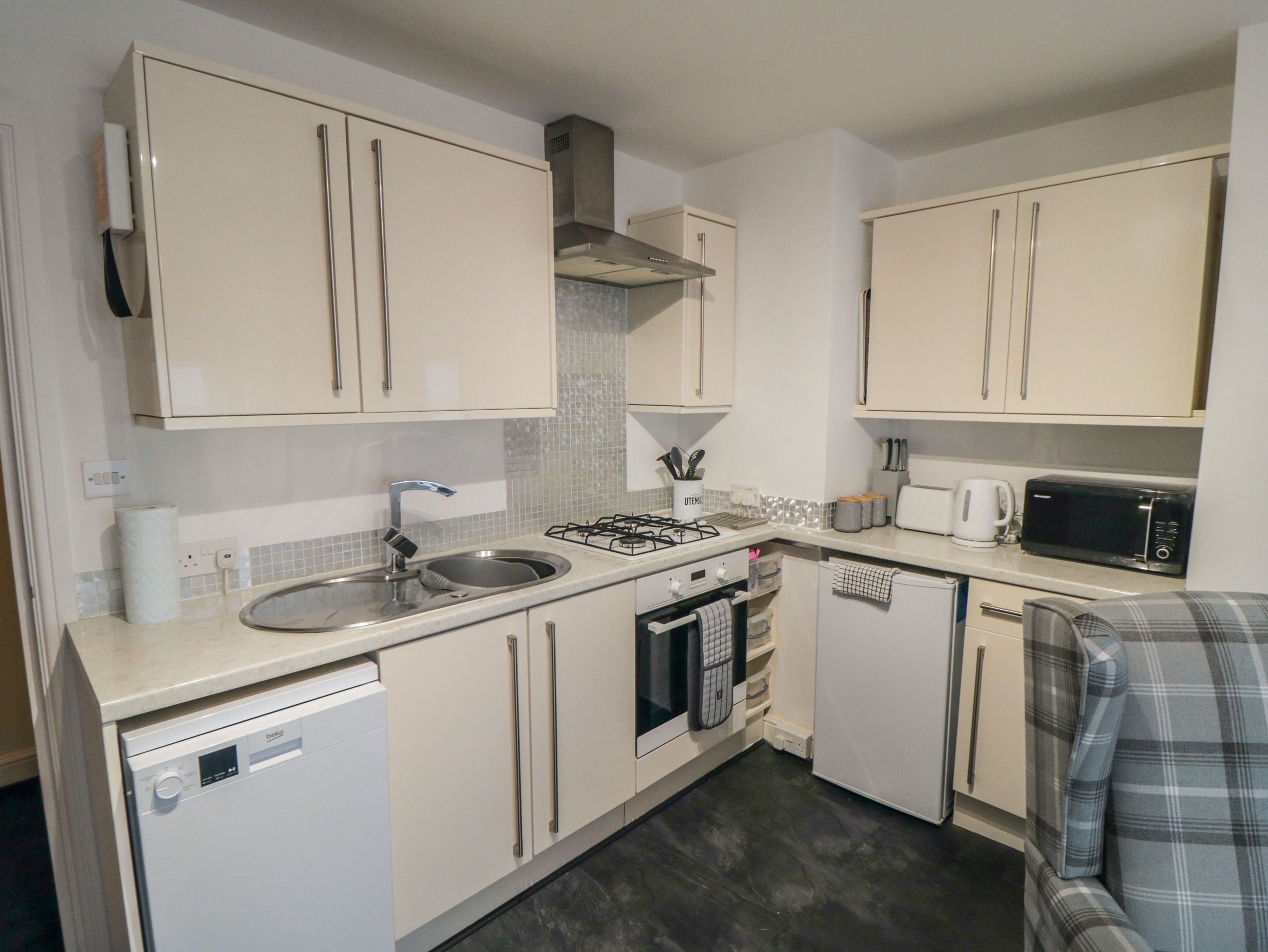 Amenities Central heating. Oven, gas hob, microwave, fridge, dishwasher, kettle, toaster. TV, WiFi. Fuel and power inc. in rent. Bed linen and towels inc. in rent. Designated parking space for 1 car. Enclosed courtyard with furniture. Sorry, no pets and no smoking. Shop 0.2 miles, pub 0.1 miles, beach 0.4 miles. Note: There is a good Housekeeping Bond of £150. Note: No children under 12. This property only accepts booking starting on a Monday or a Friday