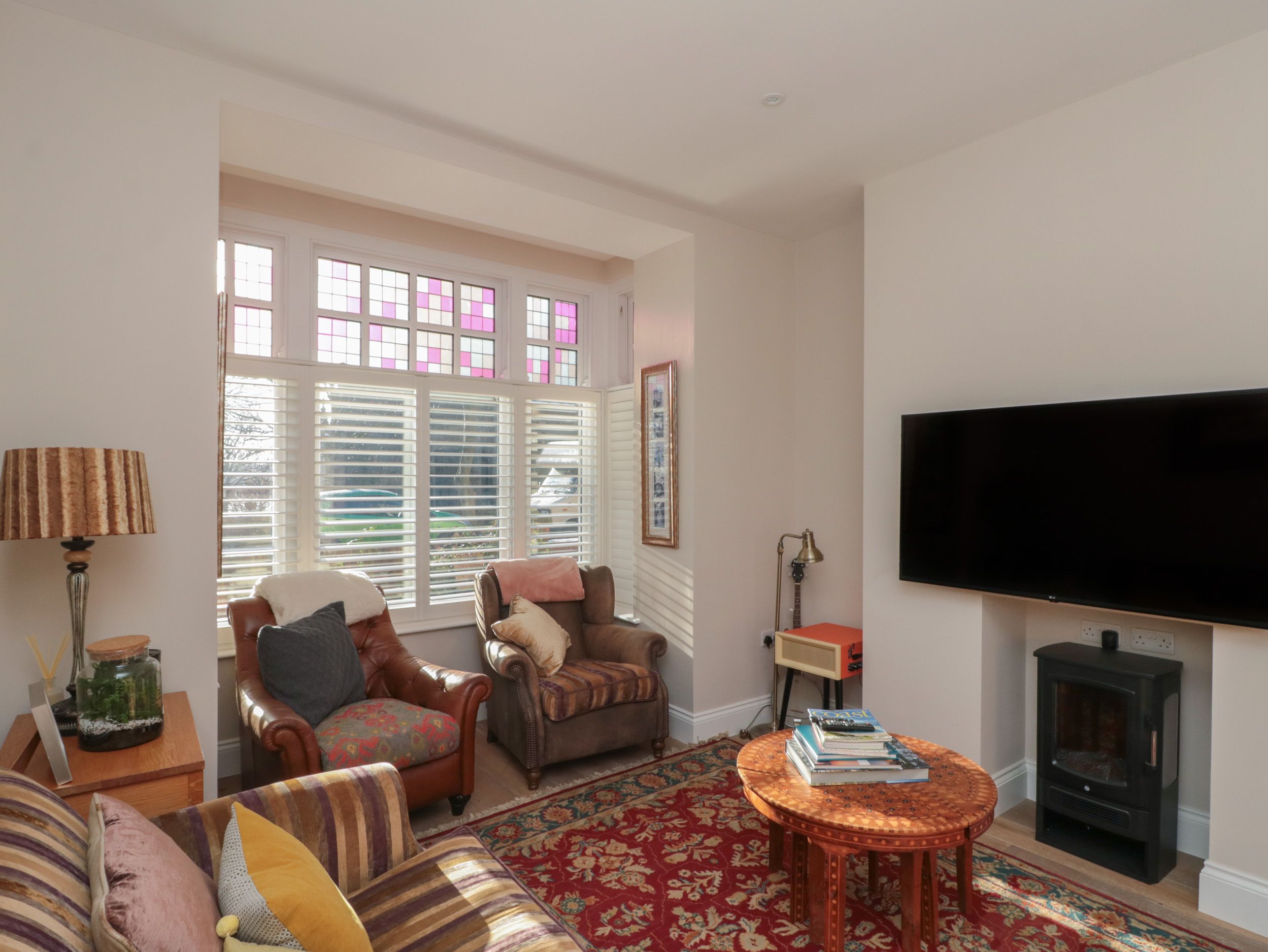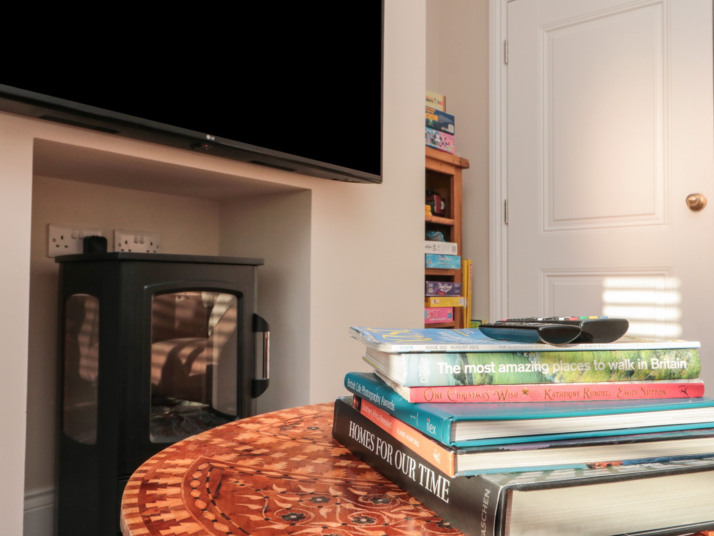 Central heating. Oven, electric hob, microwave, fridge/freezer, washing machine, tumble dryer dishwasher. Smart TV, TV, WiFi, selection of games and books. Fuel, power, and starter pack for woodburning stove inc. in rent. Bed linen and towels inc. in rent. Highchair available on request. Off-road parking for 1 car and roadside permit parking available. Shared enclosed rear garden with lawn, patio, and furniture. Two well-behaved pet welcome. Sorry, no smoking. Shop 0.4 miles, pub 0.2 miles, beach 0.7 miles, lake 0.9 miles
