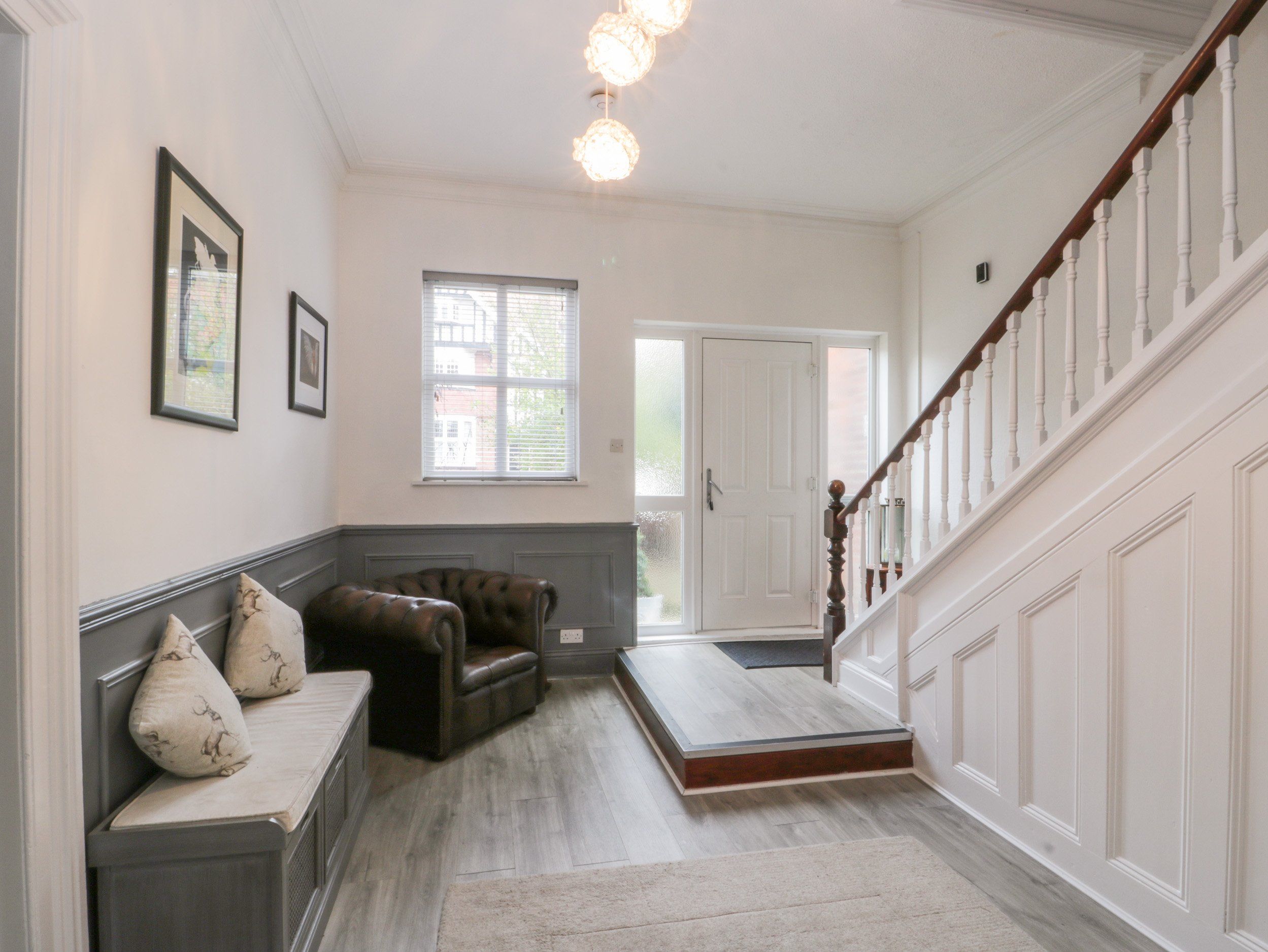 Holiday home Royal Victoria House is a large mid-terrace Victorian house found in the coastal town of Scarborough, Yorkshire. Hosting seven bedrooms in total, three lie on the first floor; a king-size, a family with double and single with pull-out bed, and a single. Four bedrooms lie on the second floor; king-size with en-suite shower room, a king-size with vanity unit and en-suite WC, a double with en-suite shower room and finally a family room with double and single with en-suite shower room, altogether sleeping fifteen people. There is also a family bathroom, a kitchen, a dining room with woodburning stove, a sitting room with gas fire, a snug, a utility and off-road parking in the garage and in front of it to the back. A rear enclosed garden has lawn, patio, decking, seating and gas heater. Royal Victoria House is a fantastically large and grand property perfect to bring your family to.