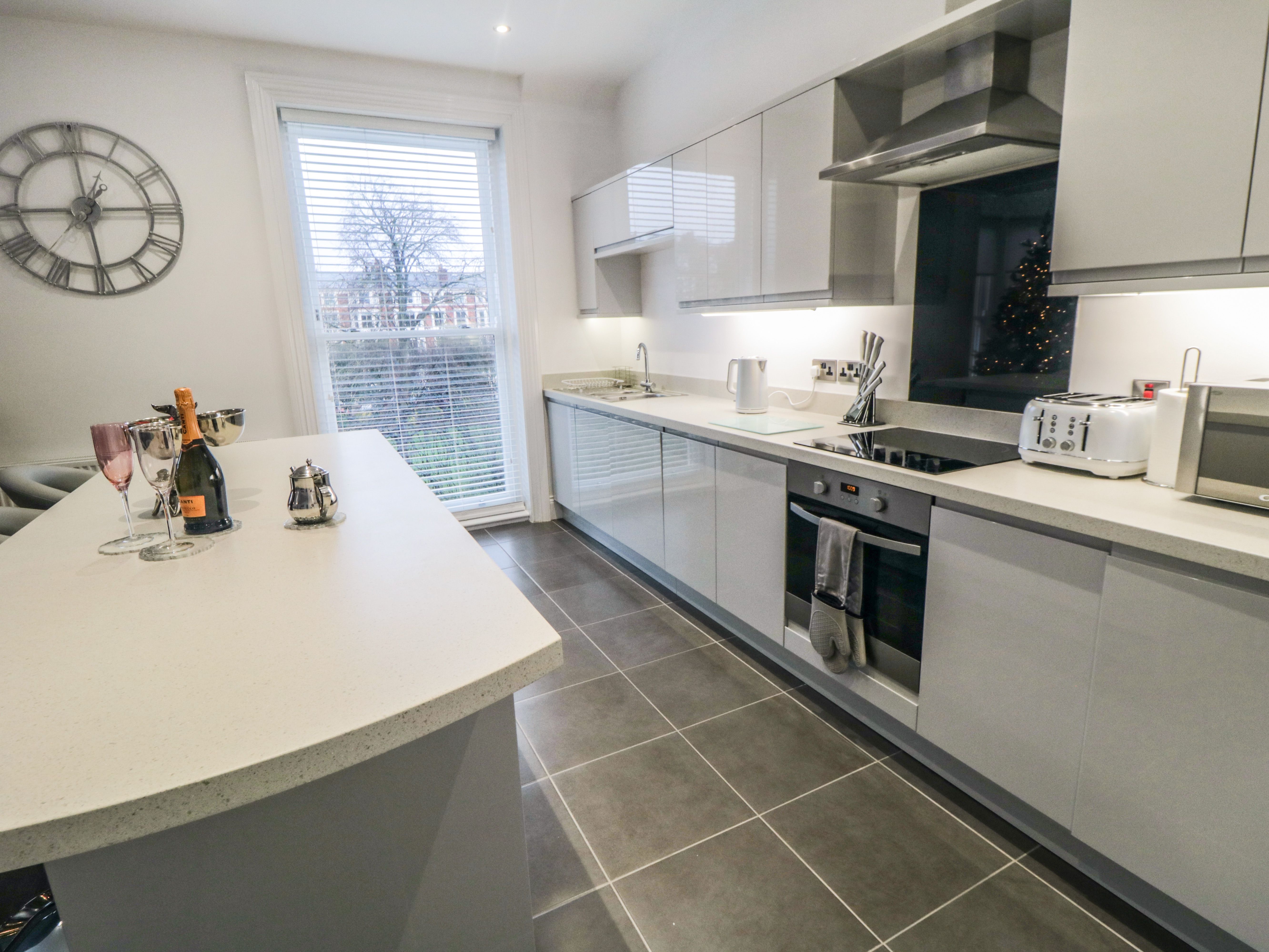 Accomodation Details Second-floor apartment. Two bedrooms: 1 x king-size with en-suite walk-in shower, basin and WC, 1 x triple bunk. Bathroom with bath, shower over, basin and WC. Open-plan living space with kitchen, dining area, sitting area and electric fire