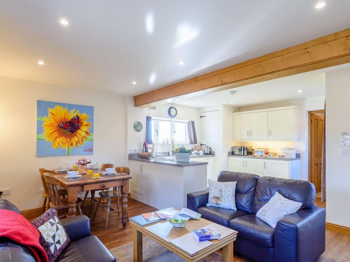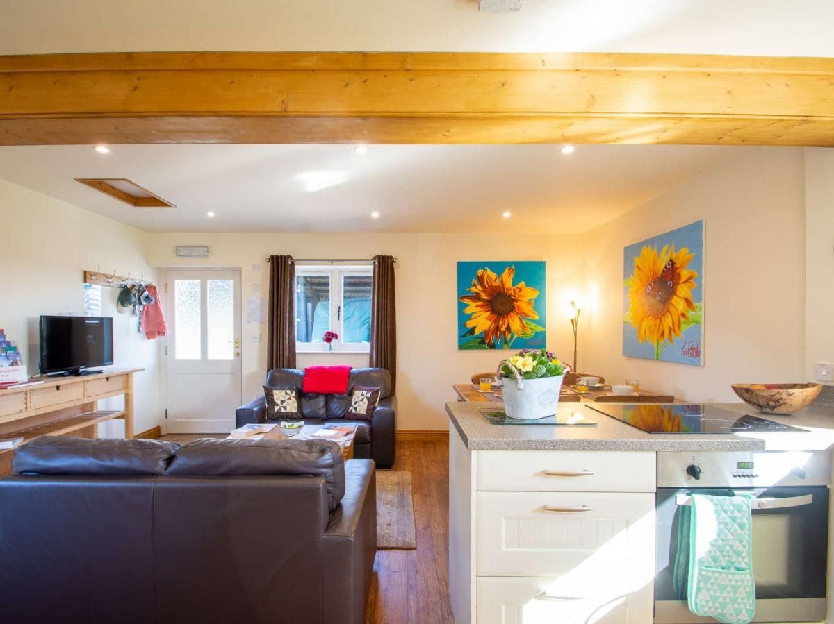 Enjoy far-reaching views of fields and hills as you follow the tree-lined driveway to this holiday abode, one of a pair located on a small working farm and sharing a pretty courtyard setting.