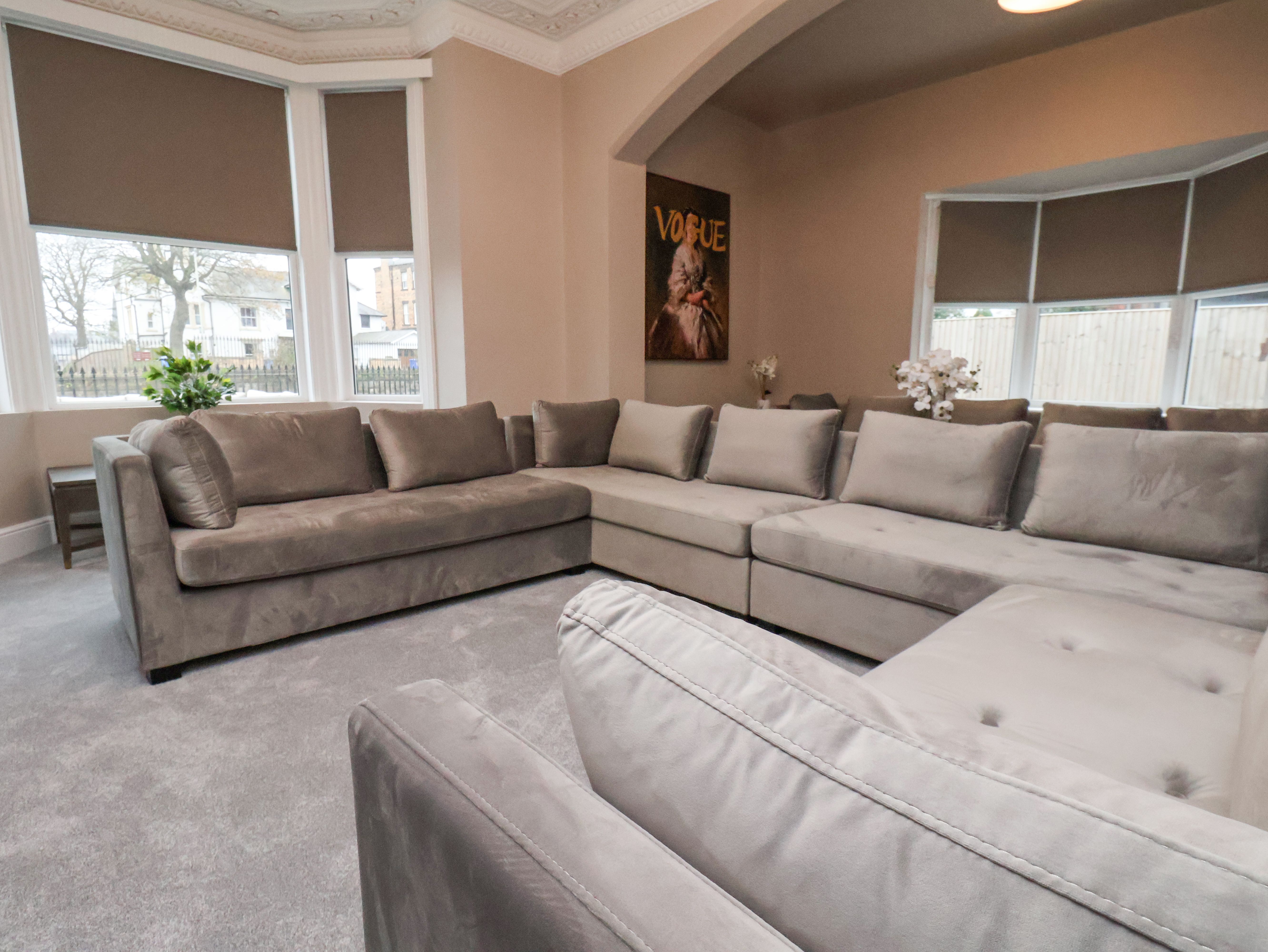 Over three floors. Eight bedrooms: 2 x ground-floor super king-size with TVs, 3 x super king size with TVs, 1 x twin with TV, 1 x second-floor king-size (zip/link, can be twin on request) with TV, en-suite walk-in shower, basin, and WC, 1 x second-floor super king size with TV. Second-floor bathroom with freestanding bath, basin, heated towel rail, and WC. Ground-floor bathroom with bath, walk-in shower, basin, heated towel rail, and WC. Shower room with walk-in shower, basin, heated towel rail, and WC. Cloakroom with basin and WC. Kitchen/diner. Utility. Sitting room
