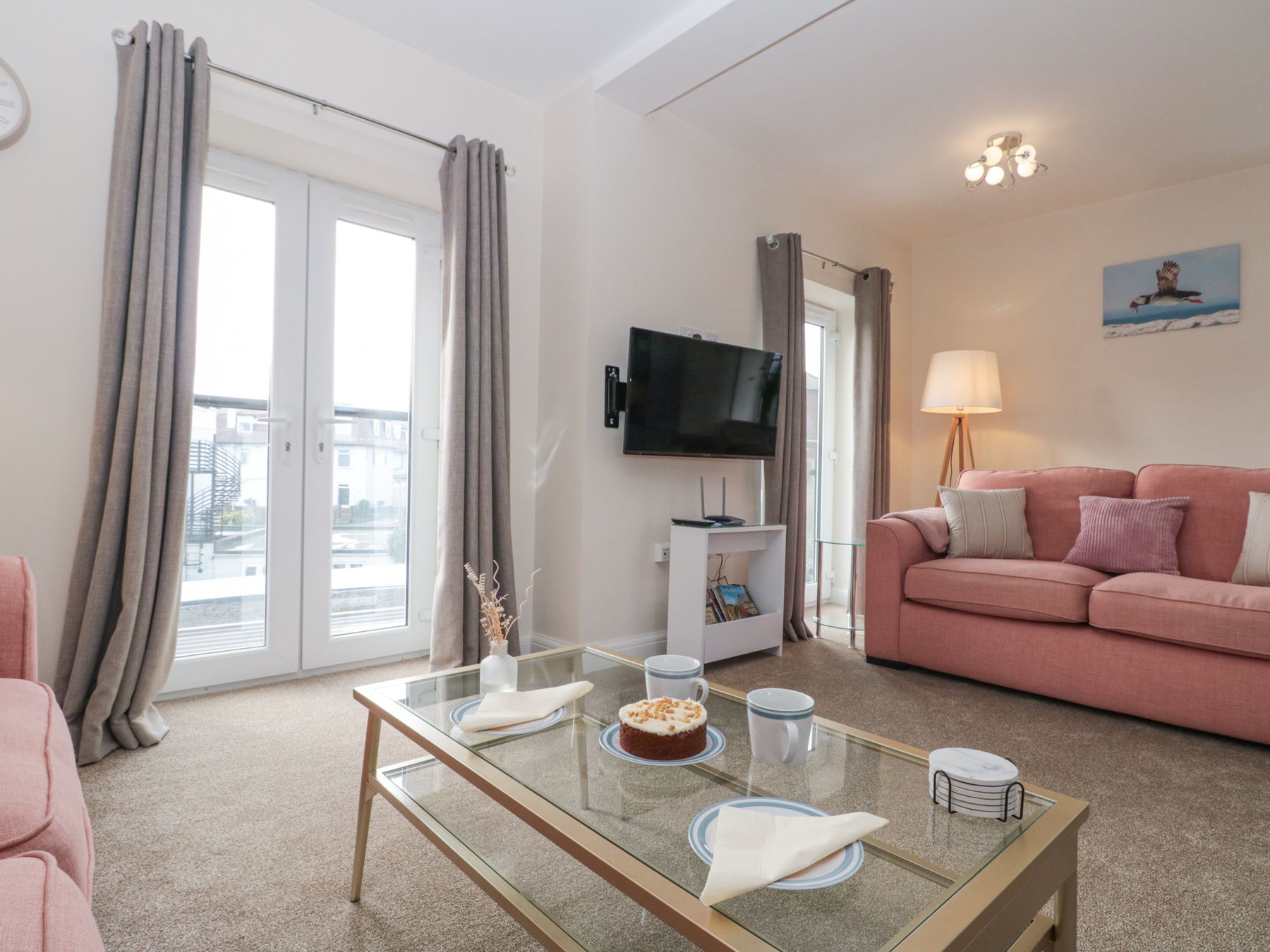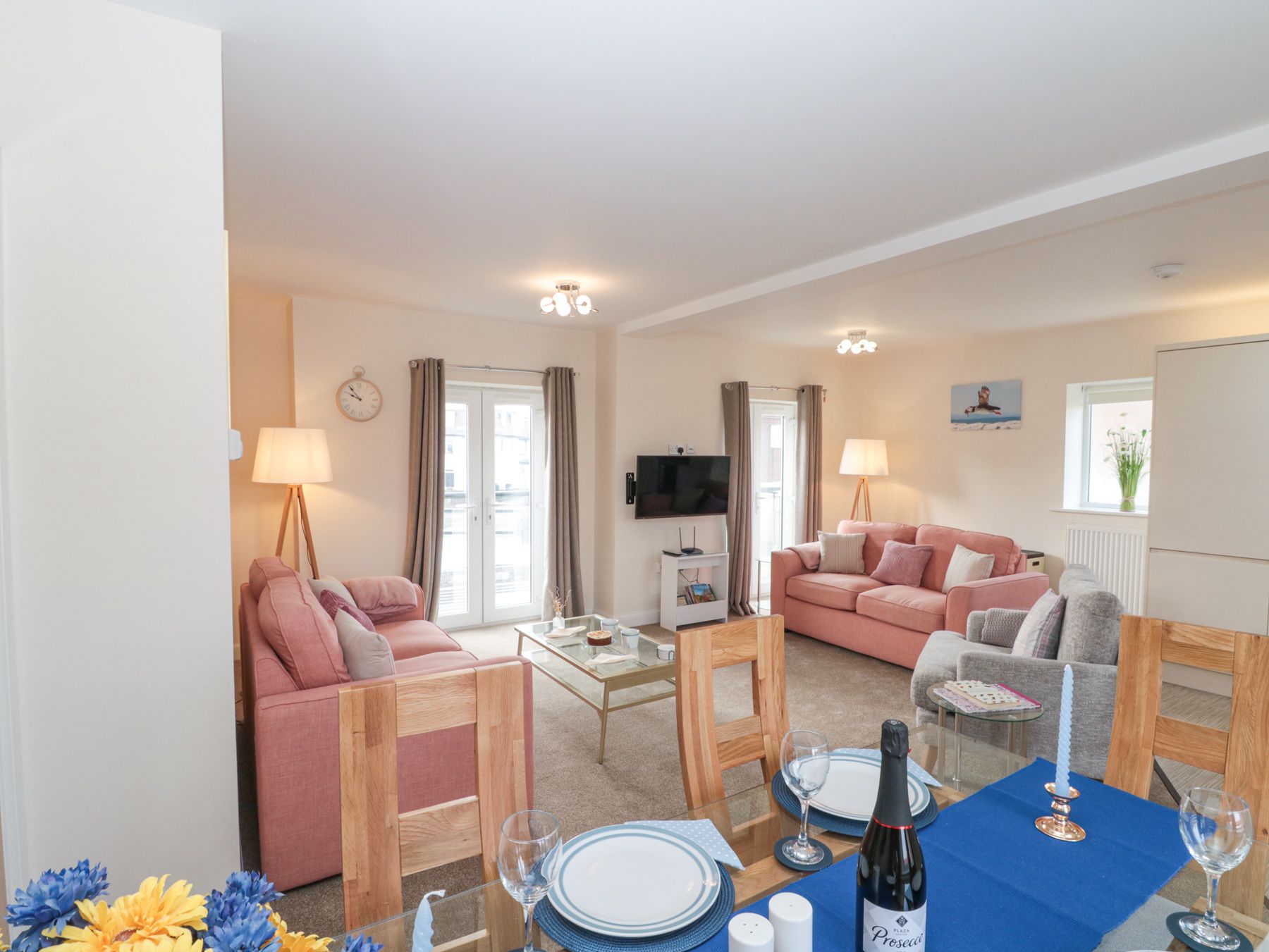 Accomodation Details Second-floor apartment. Three bedrooms: 1 x double with Smart TV and en-suite shower, basin, heated towel rail, 1 x double with Smart TV, 1 x single. Bathroom with bath, shower over, basin, heated towel rail and WC. Open-plan living space with kitchen, dining and sitting area
