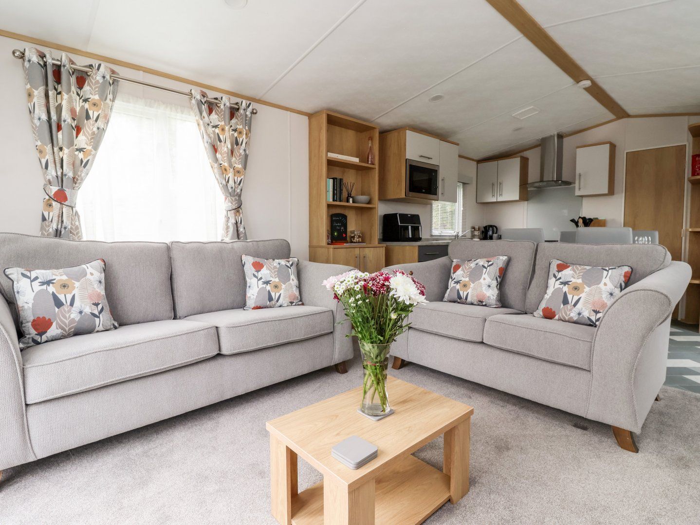 Amenities Gas central heating. Electric oven, gas hob, microwave, fridge/freezer, Air fryer. Smart TV, WiFi. Fuel and power inc. in rent. Bed linen and towels inc. in rent. Designated parking for 1 car to the side of the lodge, with additional parking in public car park. Enclosed, wrap-around decking with furniture and hot tub. Two well-behaved dogs welcome. Sorry, no smoking. Shop 1 mile, pub 1.1 miles. Note: There is an on-site bar. Note: There are steps to the exterior, unsuitable for those with limited mobility