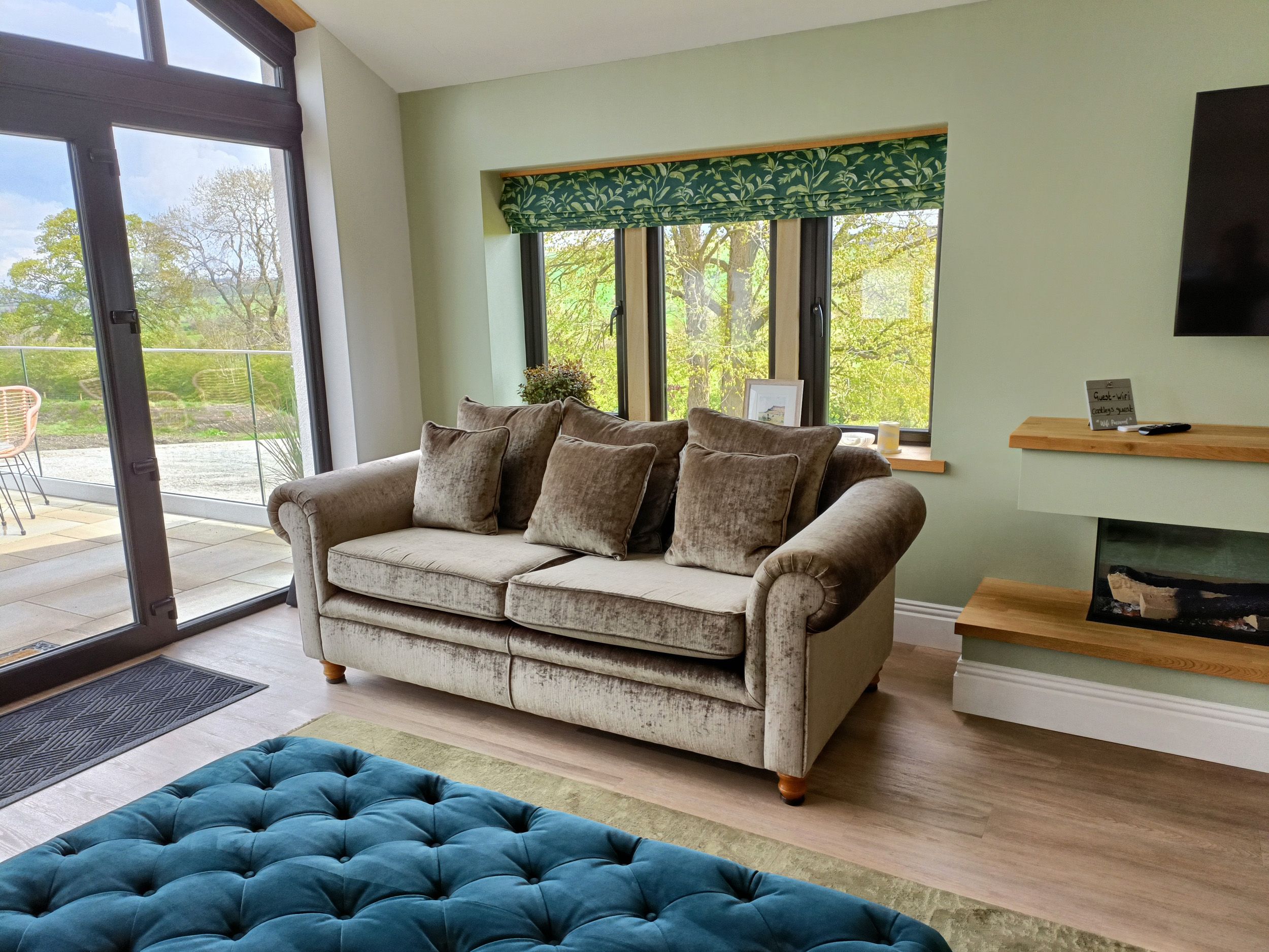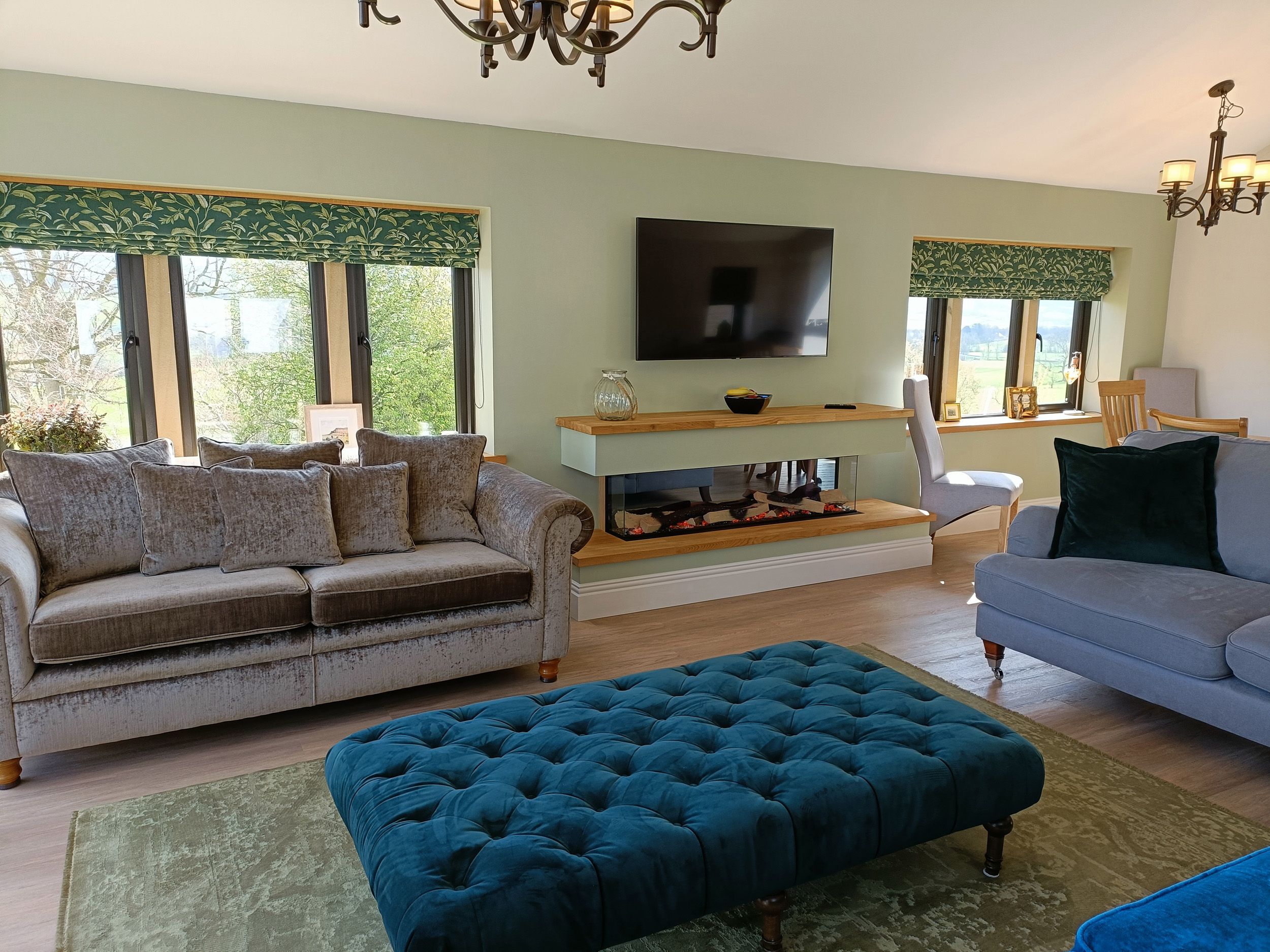 Accomodation Details Single-storey. Four bedrooms with Smart TVs: 1 x king-size with daybed and en-suite walk-in shower, basin, heated towel rail and WC, 1 x king-size with en-suite bath, shower over, basin, heated towel rail and WC, 2 x king-size with en-suite walk-in shower, basin, heated towel rail and WC. Open-plan living space with kitchen, dining area and sitting area with electric feature fire