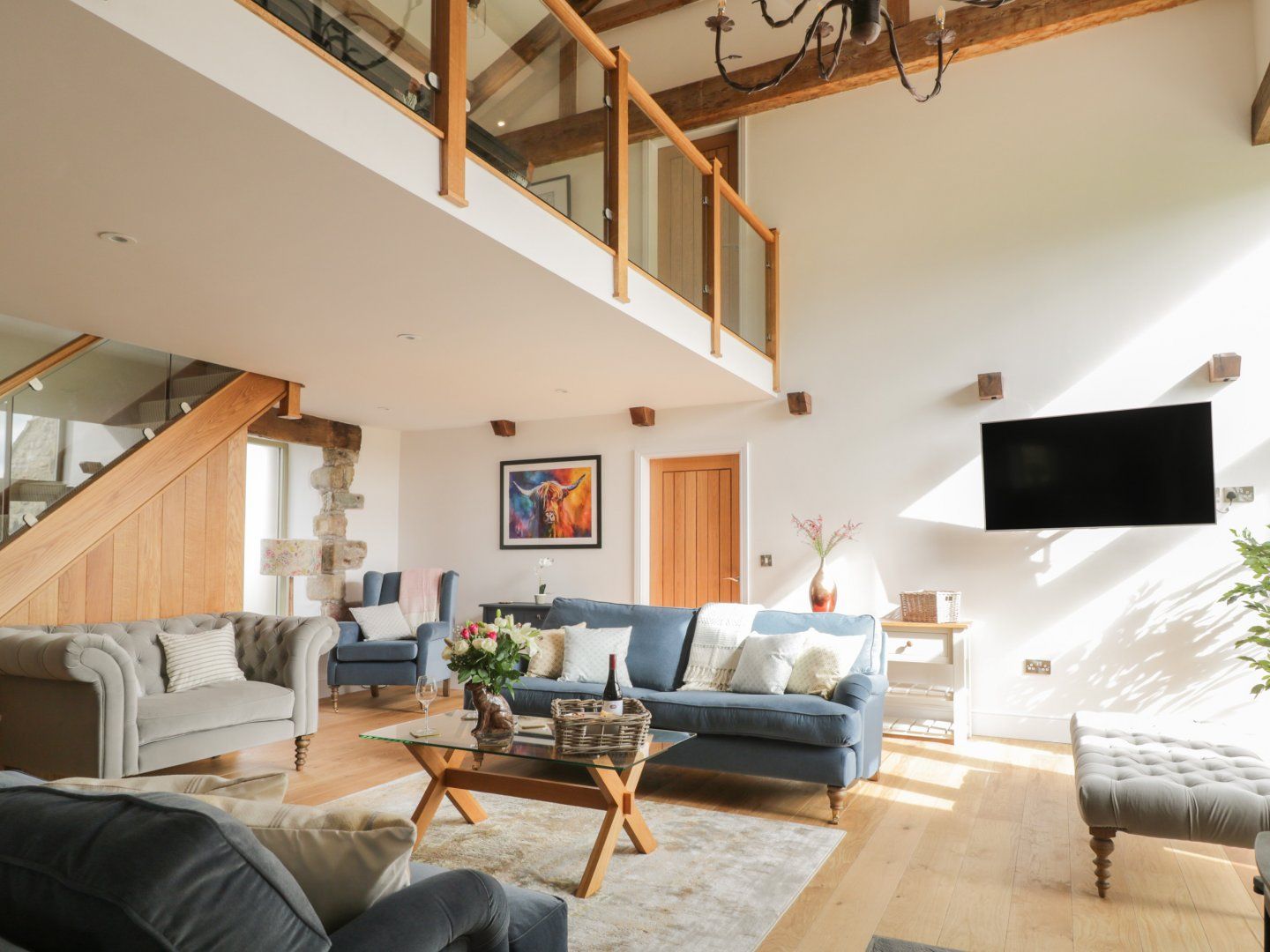 Four bedrooms (three on first floor): 1 x super-king-size (zip/link can be twin on request) with additional single day bed, window seat and en-suite with walk-in shower, basin, heated towel rail and WC, 1 x ground-floor super-king-size (zip/link can be twin on request) with en-suite bathroom with freestanding bath, separate walk-in shower, basin, heated towel rail and WC, 1 x king-size with en-suite bathroom with freestanding bath, separate walk-in shower, basin, heated towel rail and WC and 1 x king size with en-suite walk-in shower, basin, heated towel rail and WC. Open-plan living area with a kitchen, dining area and sitting area with a woodburning stove. Utility with downstairs WC