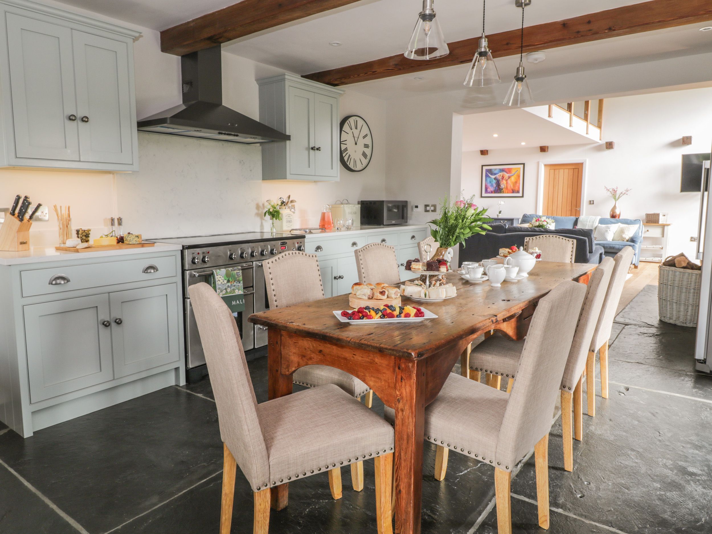 Air source heating system and woodburning stove. Electric range cooker with oven and hob, microwave, fridge/freezer, washing machine, tumble dryer, dishwasher. 5 x TVs, WiFi, pool table. Nespresso coffee machine ( uses any type of Espresso Pods). Travel cot and highchair available. Fuel and power inc. in rent. Bed linen and towels inc. in rent ( owner provides towels for the use of the hot tub). Ample off-road parking. Enclosed garden with lawn and patio with seating, bike storage and charcoal barbecue with fuel provided. Hot tub. Sorry, no pets and no smoking. Shop and pub 2 miles. Note: This property only accepts a minimum of 2 night stays. Note: There is an additional single day bed within the master bedroom - Property can sleep nine upon request. Note: There is a £150 bond required.