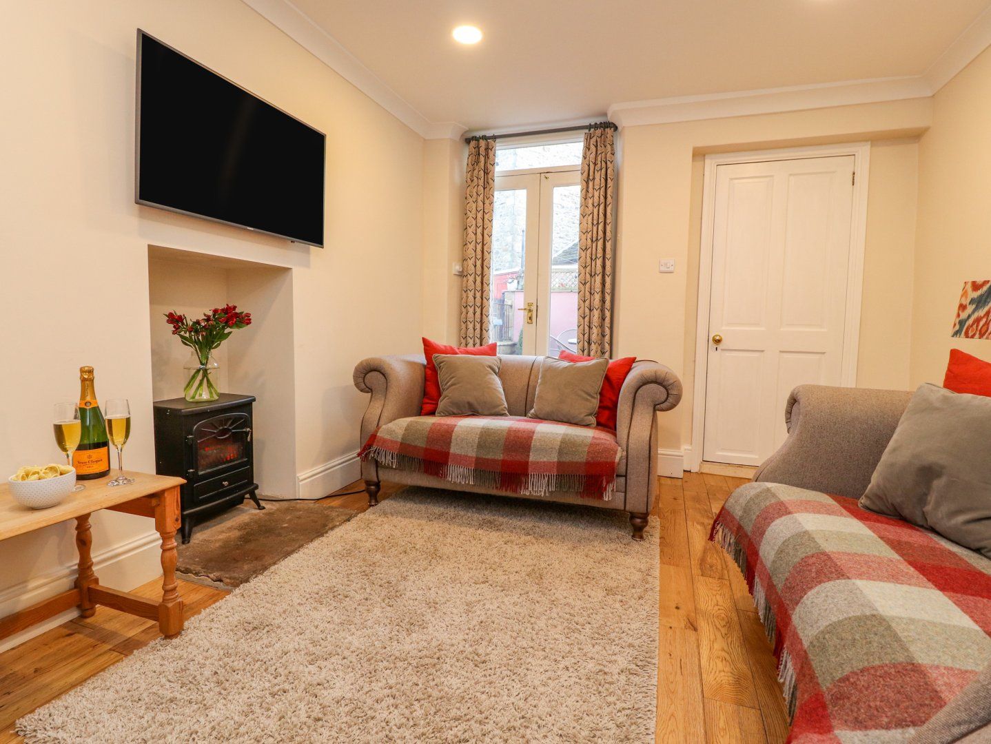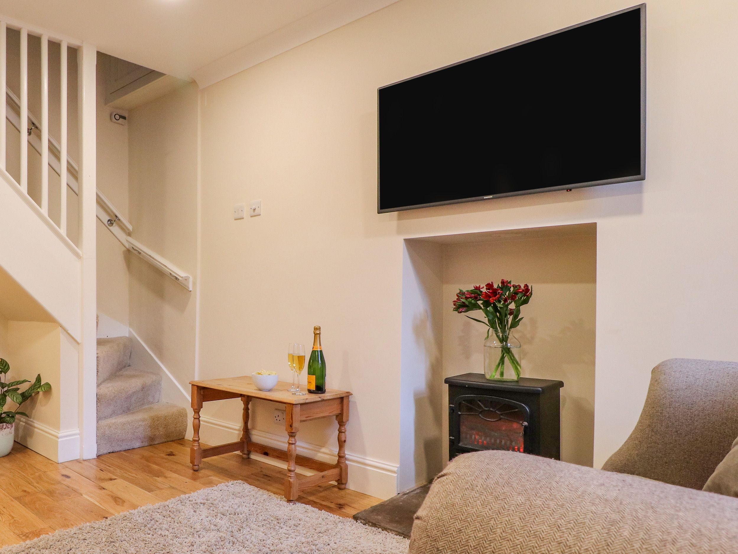 Amenities Gas central heating with electric stove. Electric oven and gas hob, microwave, fridge, freezer, dishwasher, washing machine, tumble dryer, Smart TV and WiFi. Fuel and power inc. in rent. Bed linen and towels inc. in rent. Weekly parking permit for one car in public car park 60 yards away. Patio with furniture. One well-behaved pet welcome. Although dogs are welcome in the cottage it is requested that they do not go upstairs or on the furniture out of respect for future guests. Sorry, no smoking. Shop 0.2 miles, pub 0.1 mile. Check-in time is 4pm and Check-out time is 10am. Please note this property only accepts bookings with check ins on a Monday or Friday.
