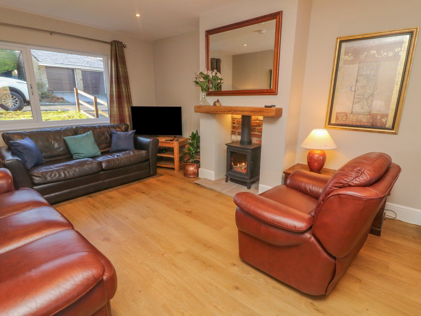 Amenities Gas central heating with Log Burner effect gas stove. Electric oven and halogen hob, microwave, kettle, toaster, fridge/freezer, washing machine, tumble dryer, dishwasher. TV, WiFi. Fuel and power inc. in rent. Bed linen and towels inc. in rent. Off-road parking for 1 car and extra parking for 2 further cars available right outside the property. Further roadside parking available near to property. Enclosed rear garden with lawn, patio and furniture. Cot and highchair available on request. Lockable bike storage available on request. Sorry, no pets and no smoking. Shop and pub 0.5 miles. Note: No hen stag or similar. Note: The owner lives locally. Note Check-in from 4pm, check-out by 10am. Please note: This property requires Friday changeovers, if you book an alternative arrival day, please ensure the departure day is Friday, for alternative departure dates, please contact the Sykes for approval.