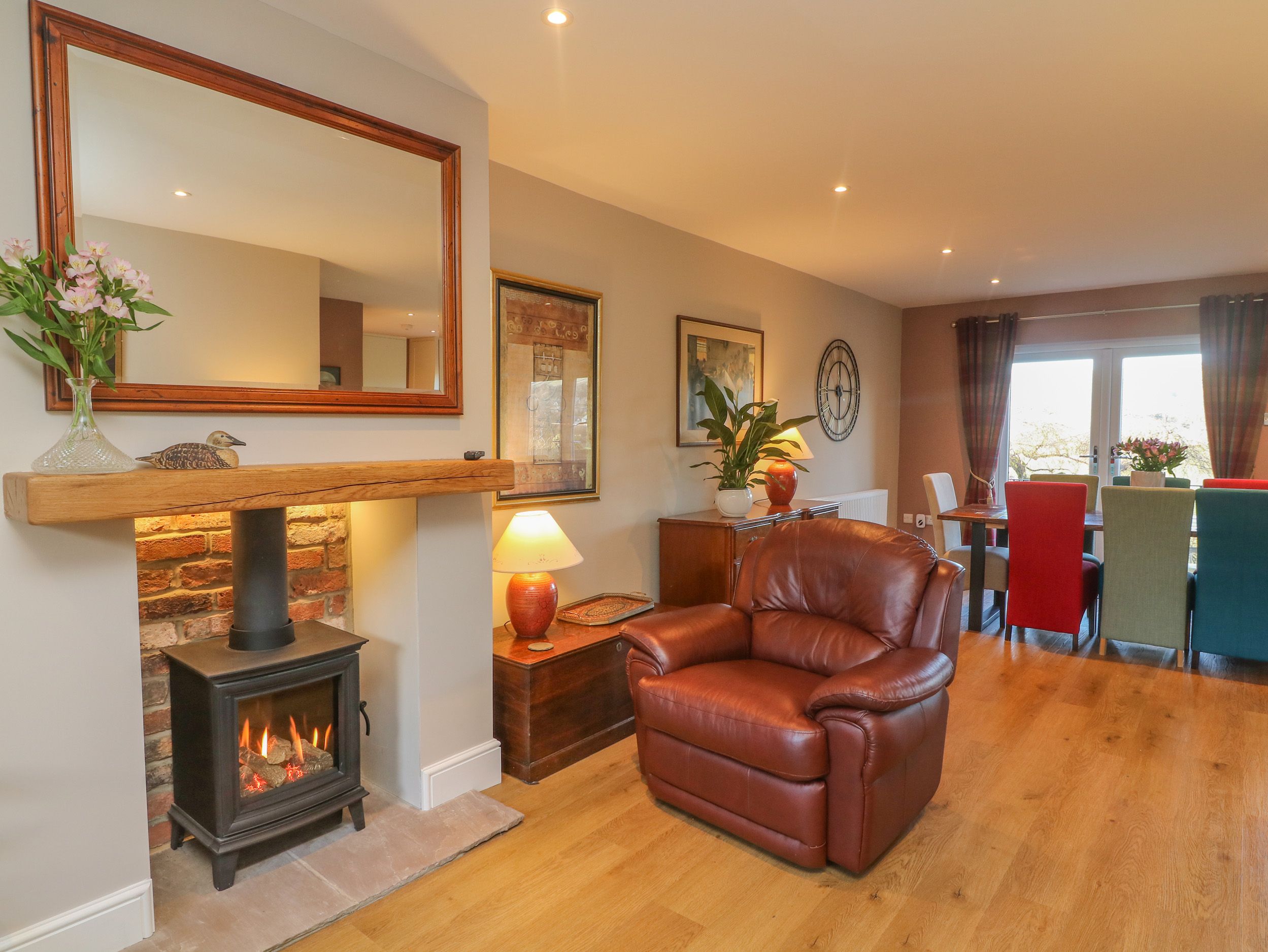 Accomodation Details Four bedrooms: 2 x super king-size (zip/link, can be twin on request) with en-suite walk-in shower, basin, heated towel rail and WC, 1 x king-size, 1 x double. Bathroom with roll-top bath, basin and WC. Ground-floor shower room with walk-in shower, basin, WC & laundry facilities. Open-plan living space with kitchen, dining area and sitting area with flame-effect gas fire. Snug with sofa bed