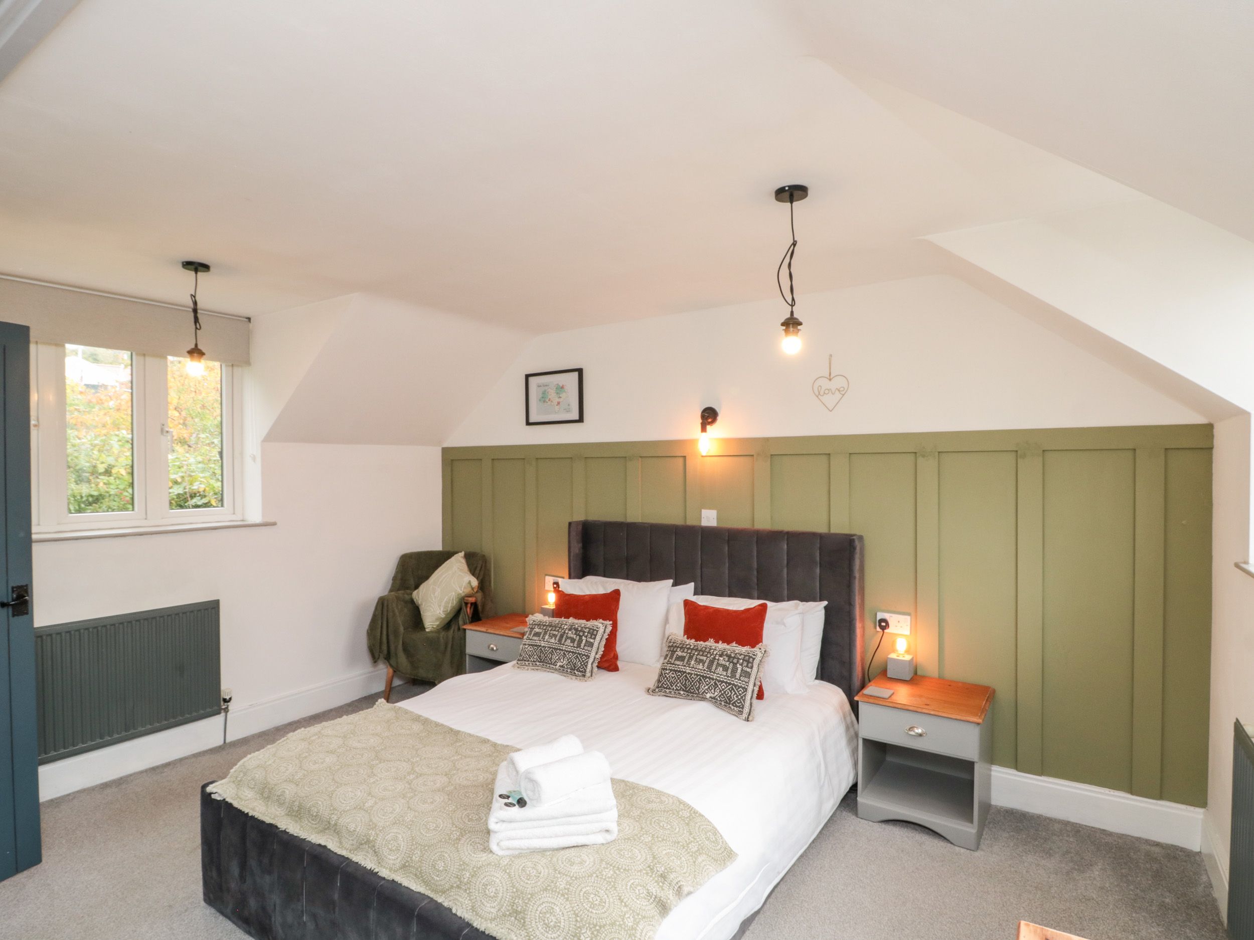 Accomodation Details One double bedroom with a king size bed . Shower room with walk-in shower, basin, and WC. Open-plan living space with kitchen, dining area and sitting area