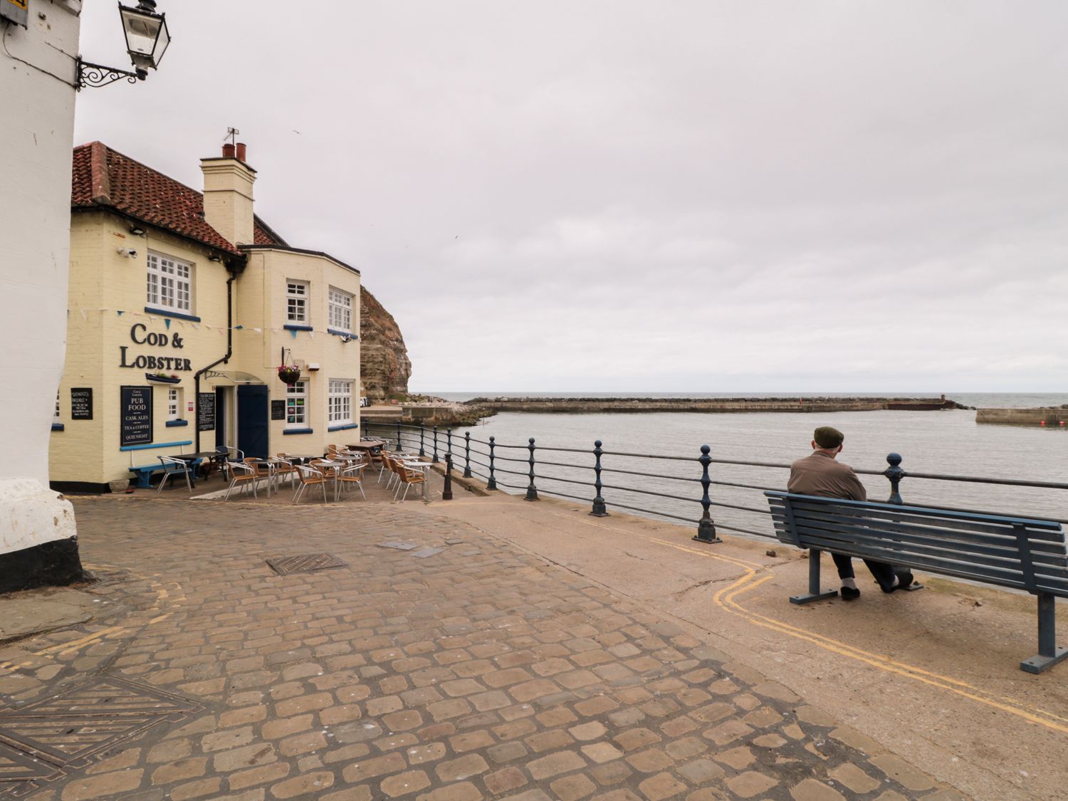 Area The seaside village of Staithes is surrounded by high craggy cliffs on three sides and there is a sheltered sandy beach set amongst the rocky coastline. Staithes has a good selection of pubs, shops and tea rooms. The best views of the town can be enjoyed from the Cleveland Way which runs down the cliffside to the sea's edge.