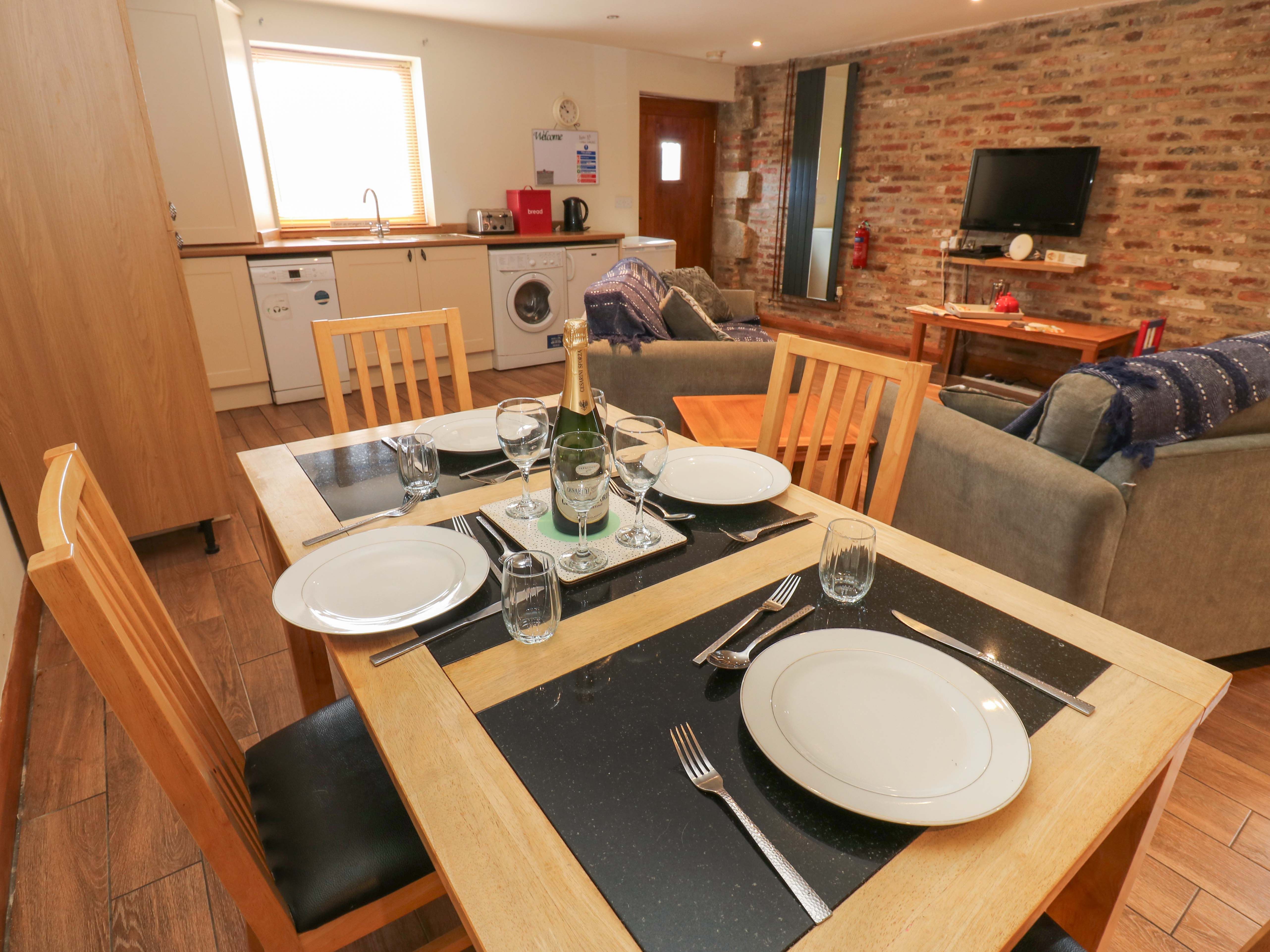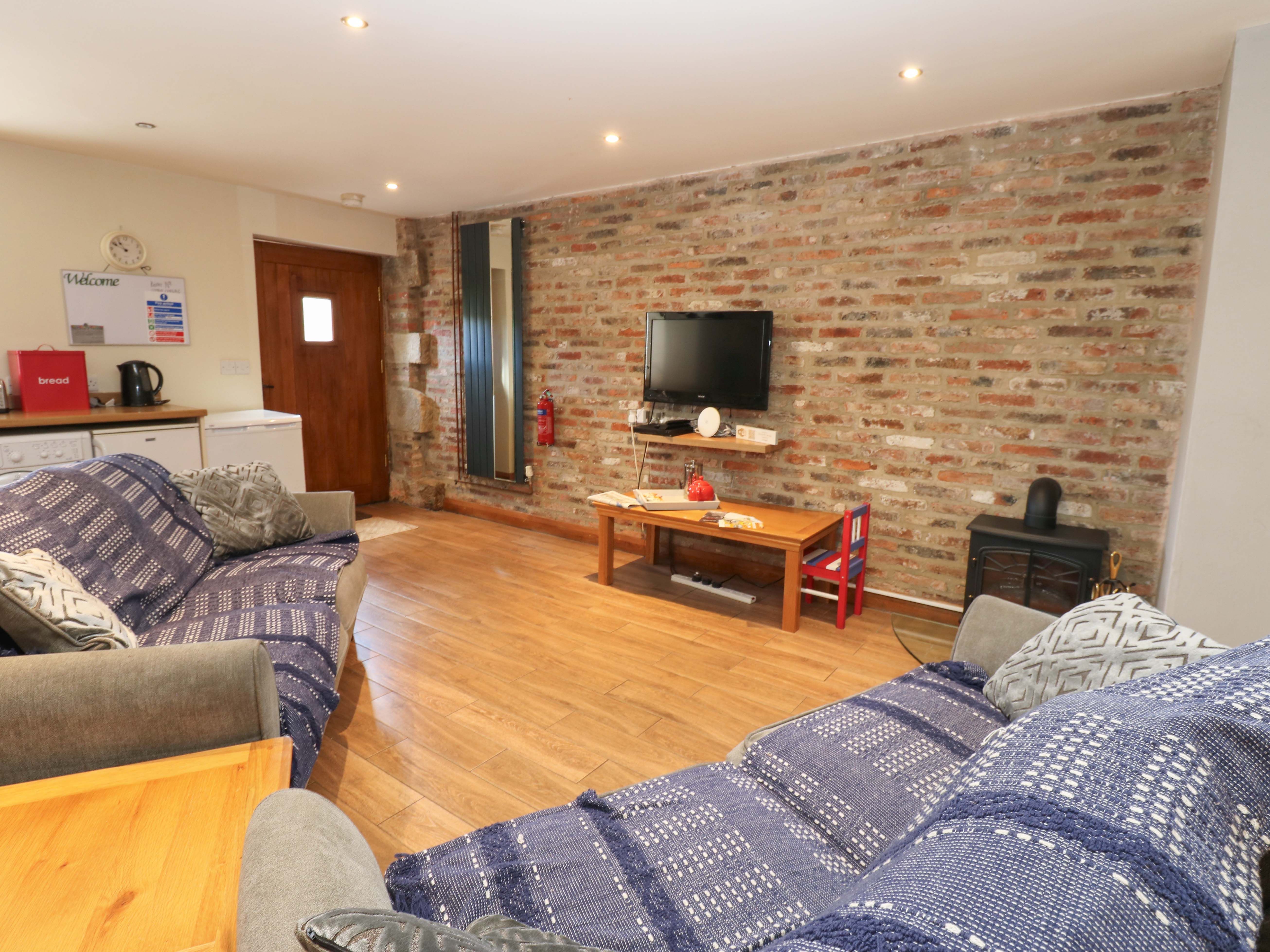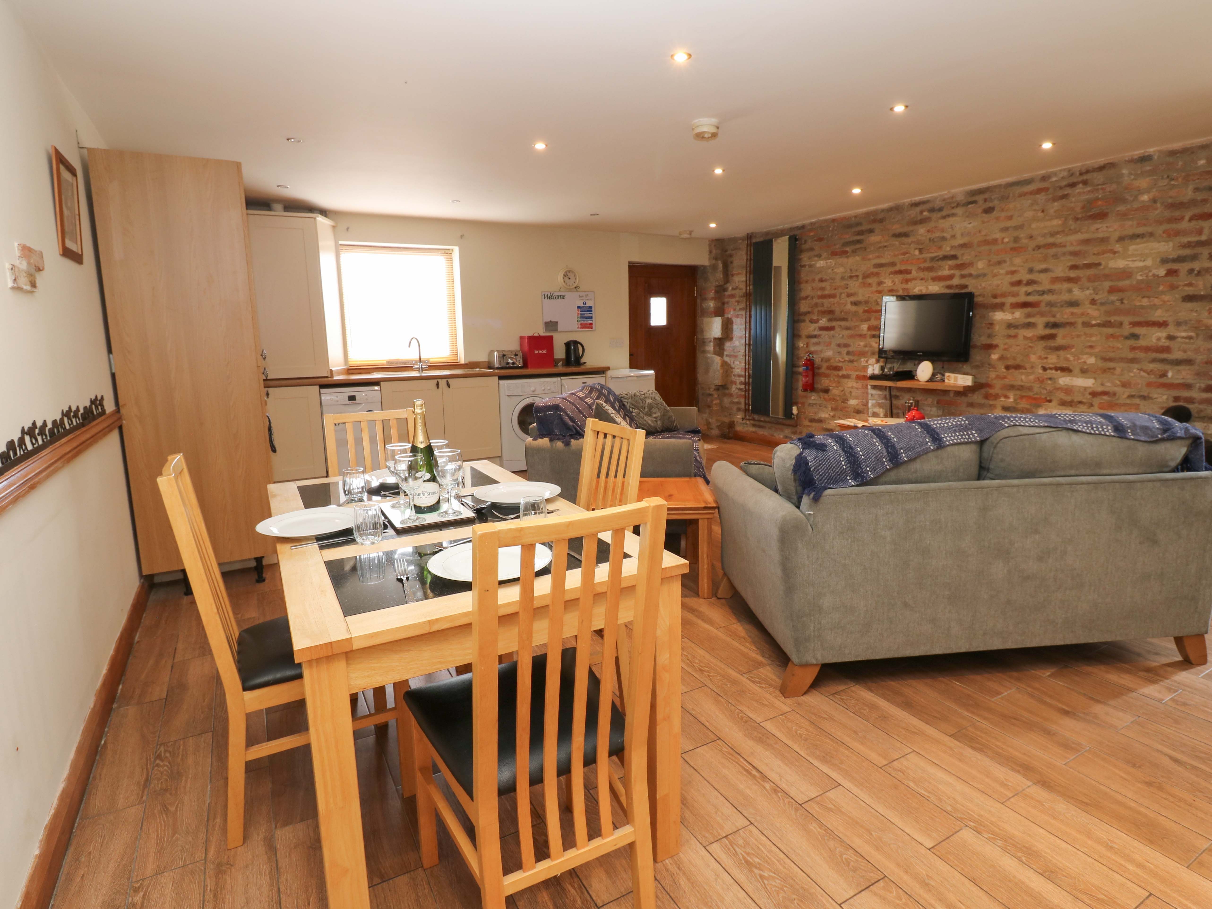 This cottage has been converted from out buildings and the quality of the furnishings was high and we had a very comfortable and warm stay on a blowy week in October. We had some lovely walks into Potto where there is a fabulous pub and we'd stay again. The kitchen area was fine for a few days but didn't have much work space and we didn't use the electric hob much. The bathroom was spacious and immaculate, likewise the two bedrooms. The cottage is fairly remote so you have to drive about 3 miles to get provisions. There are some toys in an outbuilding also used by people who have horses stabled at the farm, but they were a bit basic and some couldn't be used as bits were missing e.g. the air hockey table. There are electric charging stations for those with electric cars!