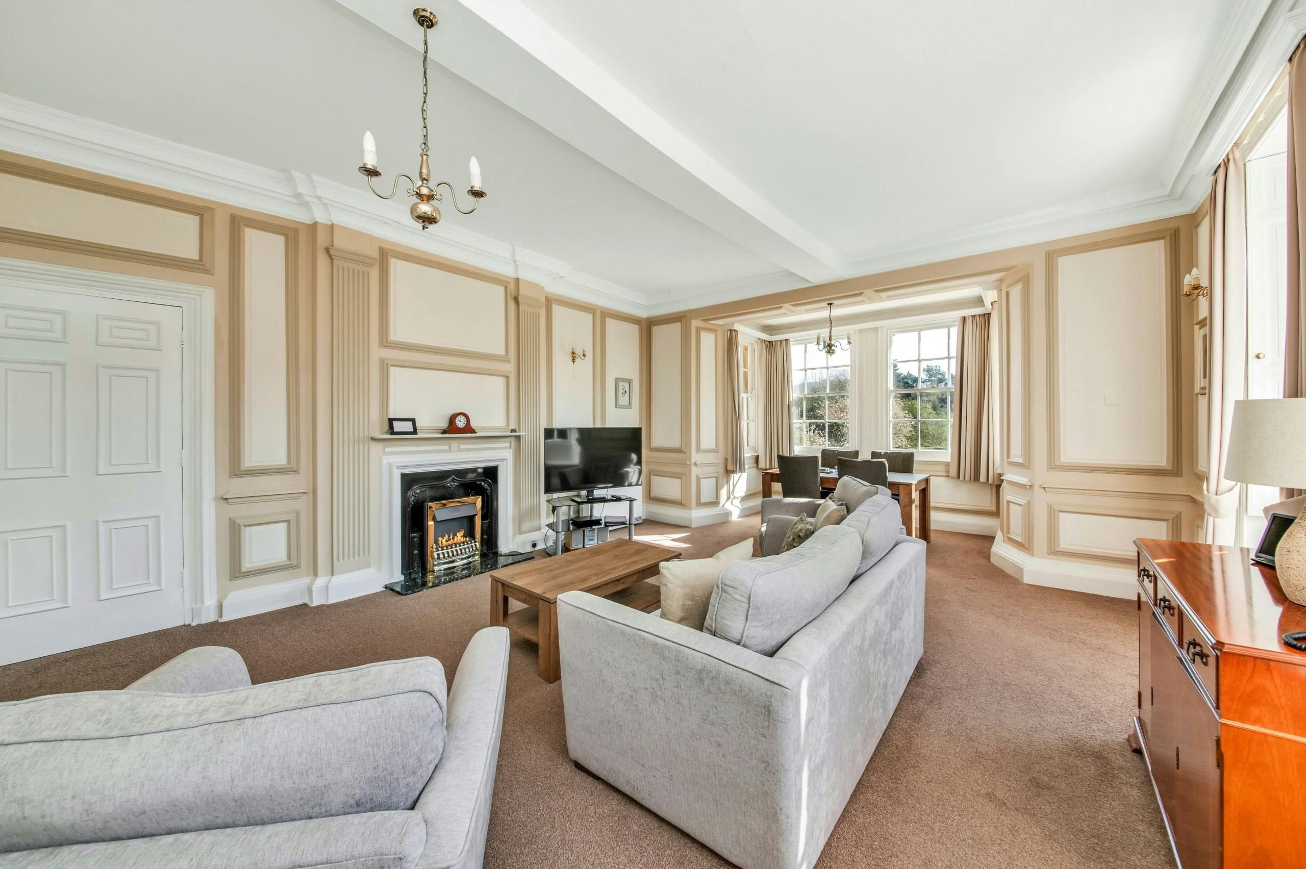 This apartment offers an idyllic base for exploring North Yorkshire. It’s in the countryside surrounding the market town of Thirsk, offering views of rolling hills and valleys from the garden, and with scenic trails nearby. Staying here, you’ll have access to excellent shared facilities, including a swimming pool, hot tub, and sauna. Your host can also arrange golf, tennis, and fishing to make your stay all the more enjoyable. The apartment is comfortable, with an open-plan living and dining space – this is where guests three and four will sleep on a sofa bed.