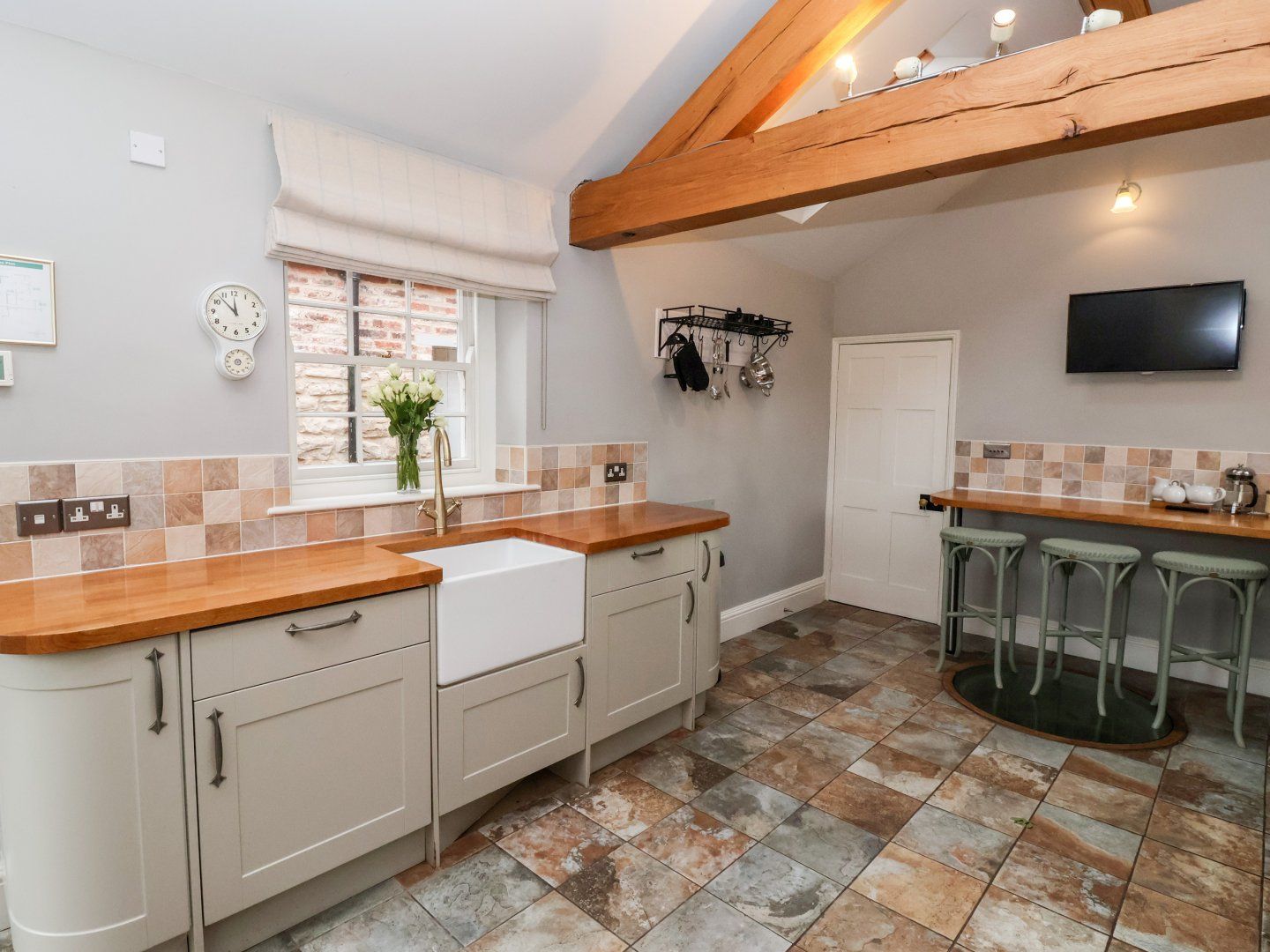 The living areas in this property consist of a kitchen/diner with a gas Range oven and hob, microwave, fridge/freezer, and Smart TV, and a living/dining room with Smart TV, DVD player, iPod docking station, and open fire. The bedrooms consist of five king-size bedrooms with Smart TVs, three of which have en-suites, and a ground-floor twin with daybeds and a Smart TV, along with a bathroom. Outside there is a rear patio with furniture, and secure on-site parking. This is a smoke-free property. Fuel, power, bed linen, luxury towels, bathrobes, hand towels, bathmats, and toiletries are all included in the price. You'll find a shop in 2.5 miles and a pub in 2.6 miles. The Stables and West Wing are a delightful base for a large group break to North Yorkshire. Note: Both sides of the property have shared access to the living areas, including the kitchen.