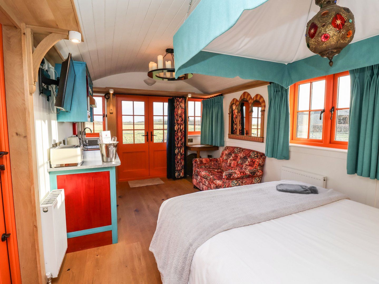 Holiday home The living areas in this studio-style shepherd's hut consist of a kitchenette and sitting area with oven, hob, kettle, toaster, and Smart TV. There's also a king-size bed, along with a shower room. Outside there is a front patio with furniture, and secure on-site parking. This property is smoke free. You'll find a shop in 2.5 miles and a pub in 2.6 miles. WiFi, fuel, power, bed linen and towels are all included in the price. Whisk your loved one away for a romantic break to North Yorkshire at The Storyteller. Note: There are steps up to the property.