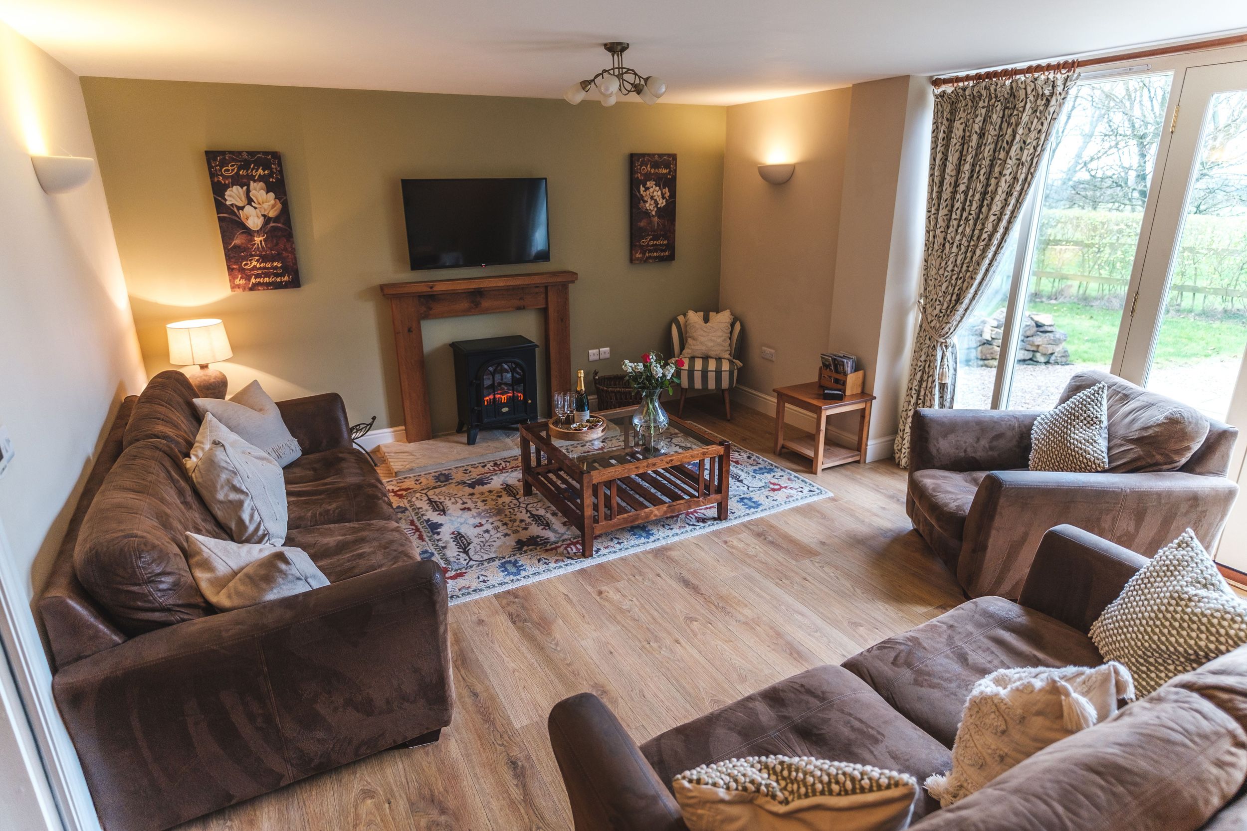 Holiday home Badger, a house consists of a kitchen with an oven, hob, microwave, fridge, freezer, a utility with washing machine, and tumble dryer, and a living/dining room with electric fire and Smart TV, seating six guests. The bedrooms consist of a king-size with en-suite shower room and a twin (zip/link, can be super-king-size on request) and a twin, serviced by a bathroom and a ground-flooor shower room. Outside, there is an enclosed rear garden with lawn, patio, and furniture. Access to tennis courts, swimming pool, play area. Off-road parking for three cars. Within 4.7 miles you will find a shop, 2 miles a pub and 0.9 miles a river. WiFi, fuel, power, bed linen, and towels included in the rent. Sorry, no pets and no smoking. However you decide to spend your days here in North Yorkshire, guarantee a memorable getaway with a stay at Badger.