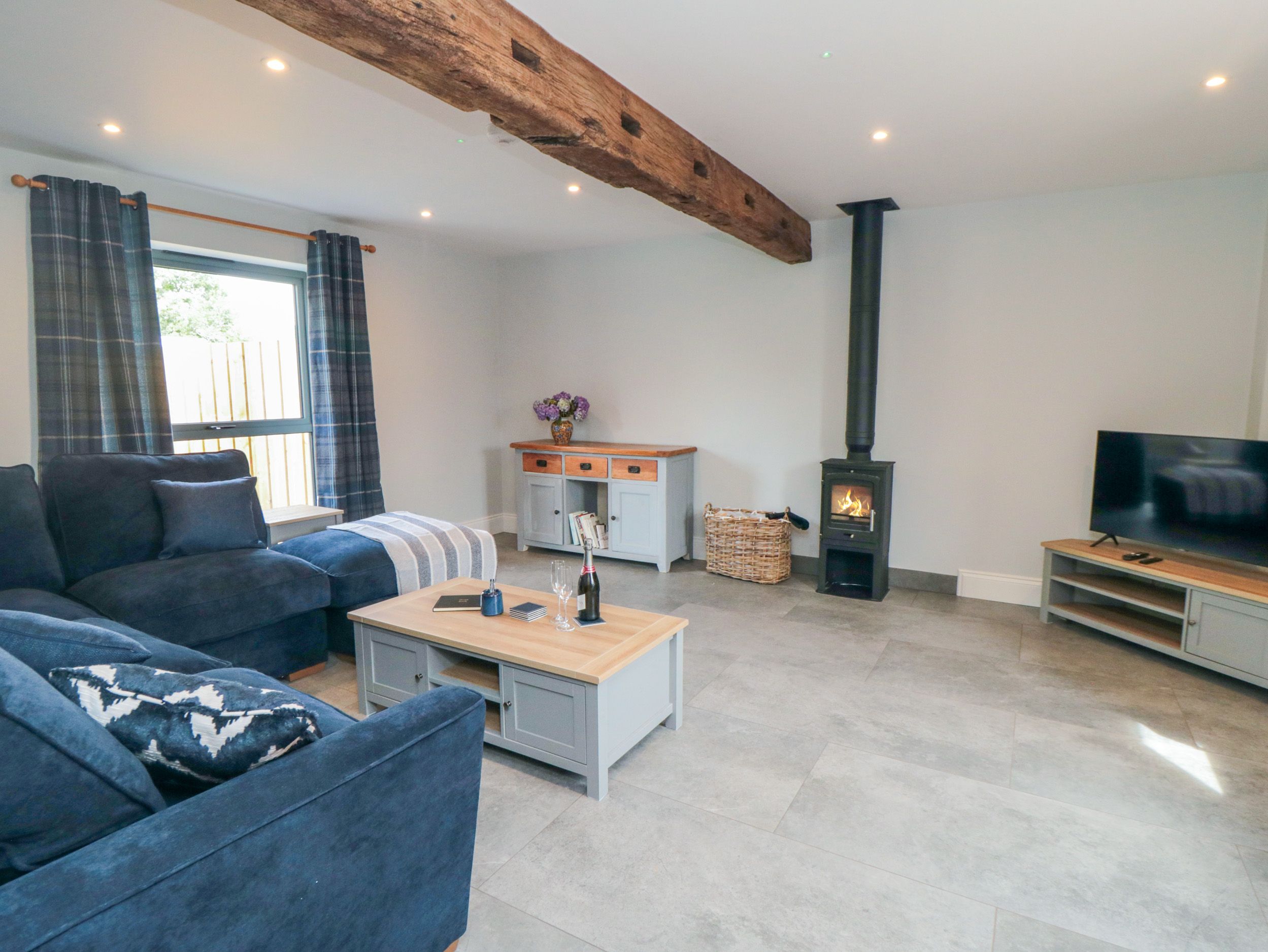 Accomodation Details Three bedrooms: 1 x king-size with TV and en-suite walk-in shower, basin, and WC, 1 x king-size, 1 x twin. Bathroom with bath, walk-in shower, basin, heated towel rail, and WC. Cloakroom with basin and WC. Kitchen/diner. Sitting room with woodburning stove