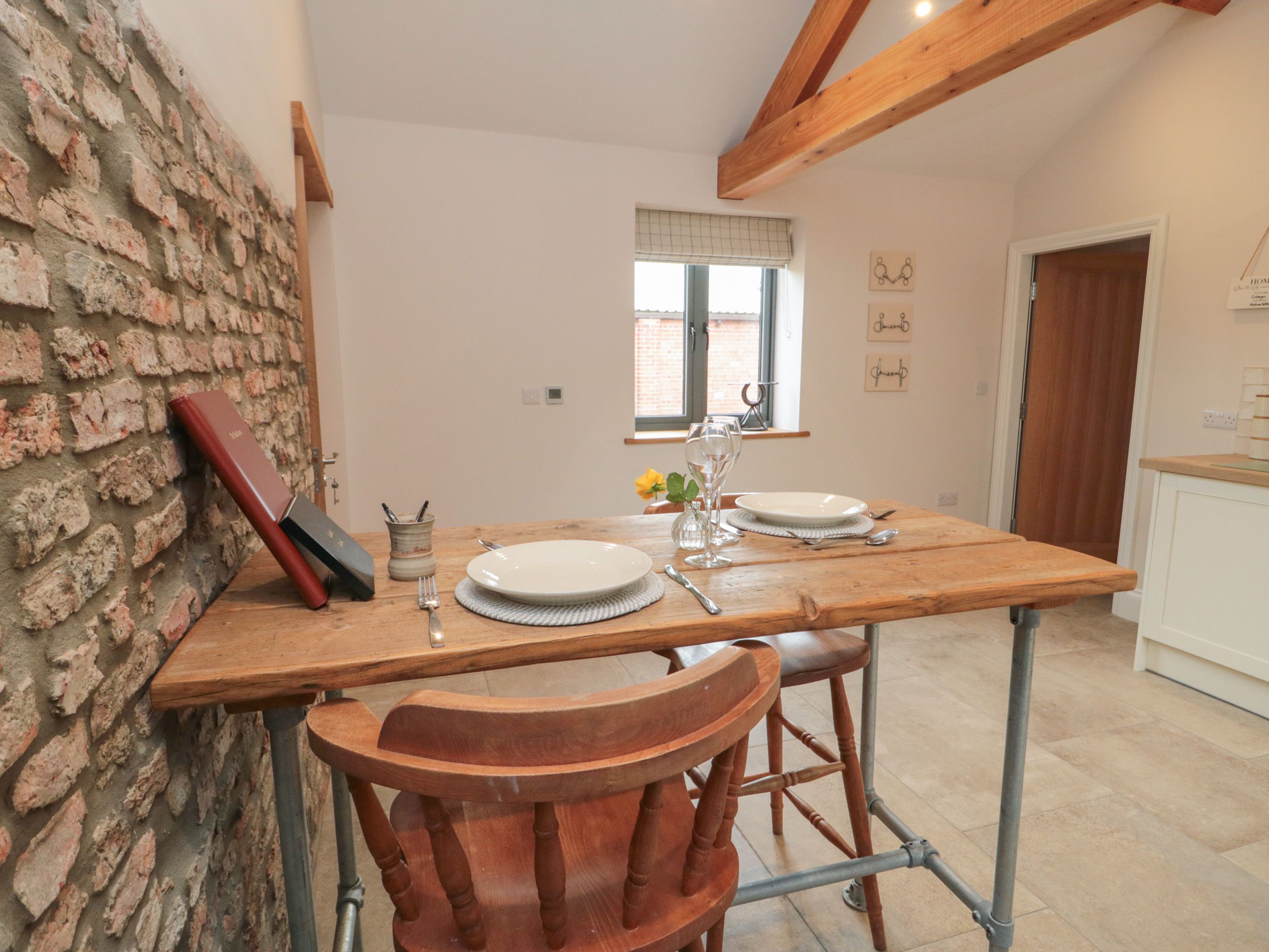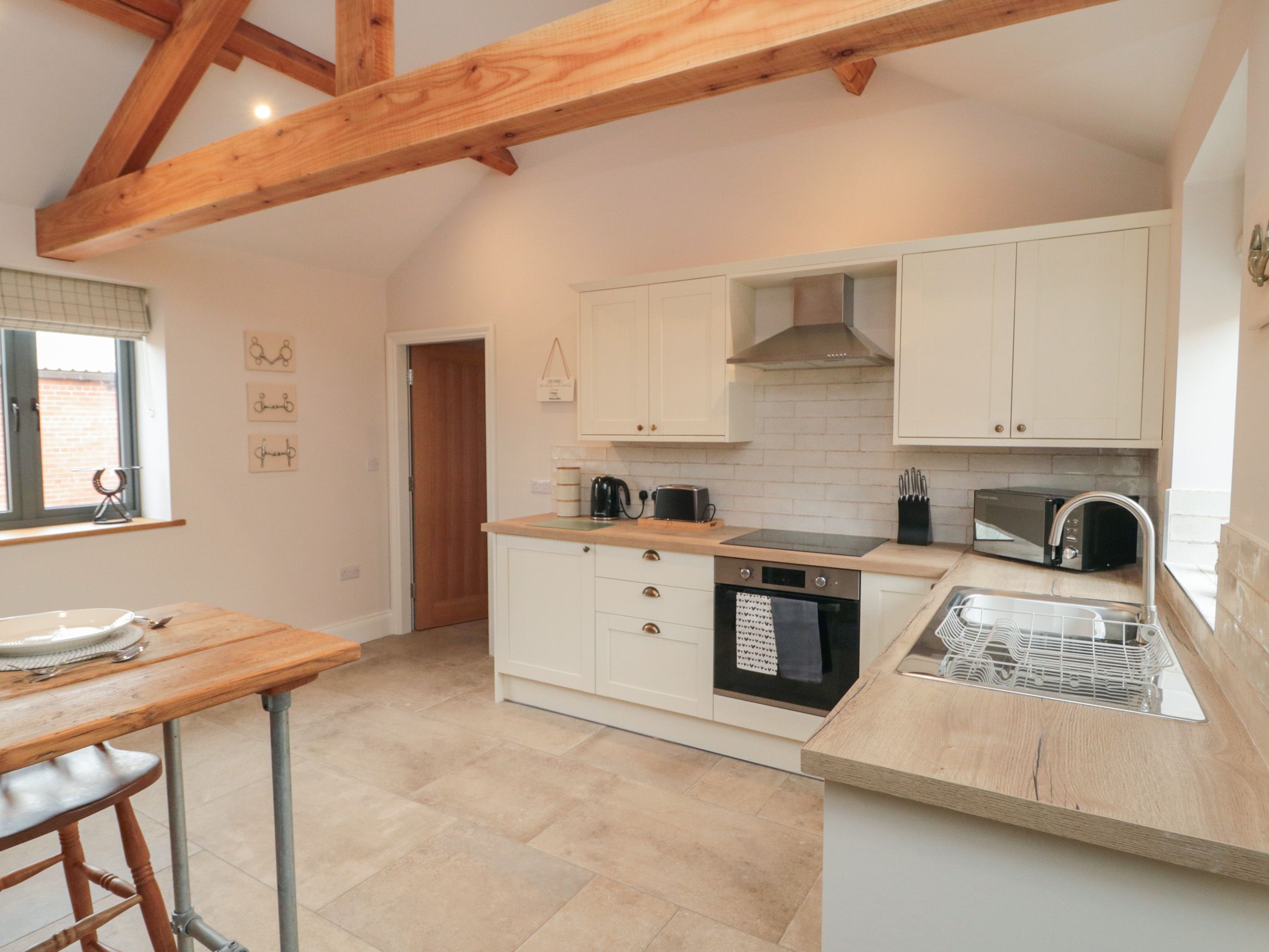 Holiday home The Tack Room, a single-storey barn conversion, consists of a open-plan living area with dining seating for two, and a kitchen with an oven, hob, microwave, fridge, dishwasher, kettle and toaster. There is a king-size bedroom with a TV and en-suite shower room with walk-in shower, basin, heated towel rail, and WC. Outside, there is an enclosed rear courtyard with patio, furniture and off-road parking for one car. Sorry, no smoking. One well-behaved dog welcome. Shop 3.1 miles, pub 1.7 miles. WiFi, fuel, power, bed linen, and towels are all included in the price. Your romantic getaway at The Tack Room is sure to be a memorable one. Note: No Hen/Stag parties or similar. Note: Check-in from 4pm, check-out by 10am. Note: There is a Good Housekeeping Bond of 150 GBP. Please Note: This property only accepts check ins on Monday and Friday.