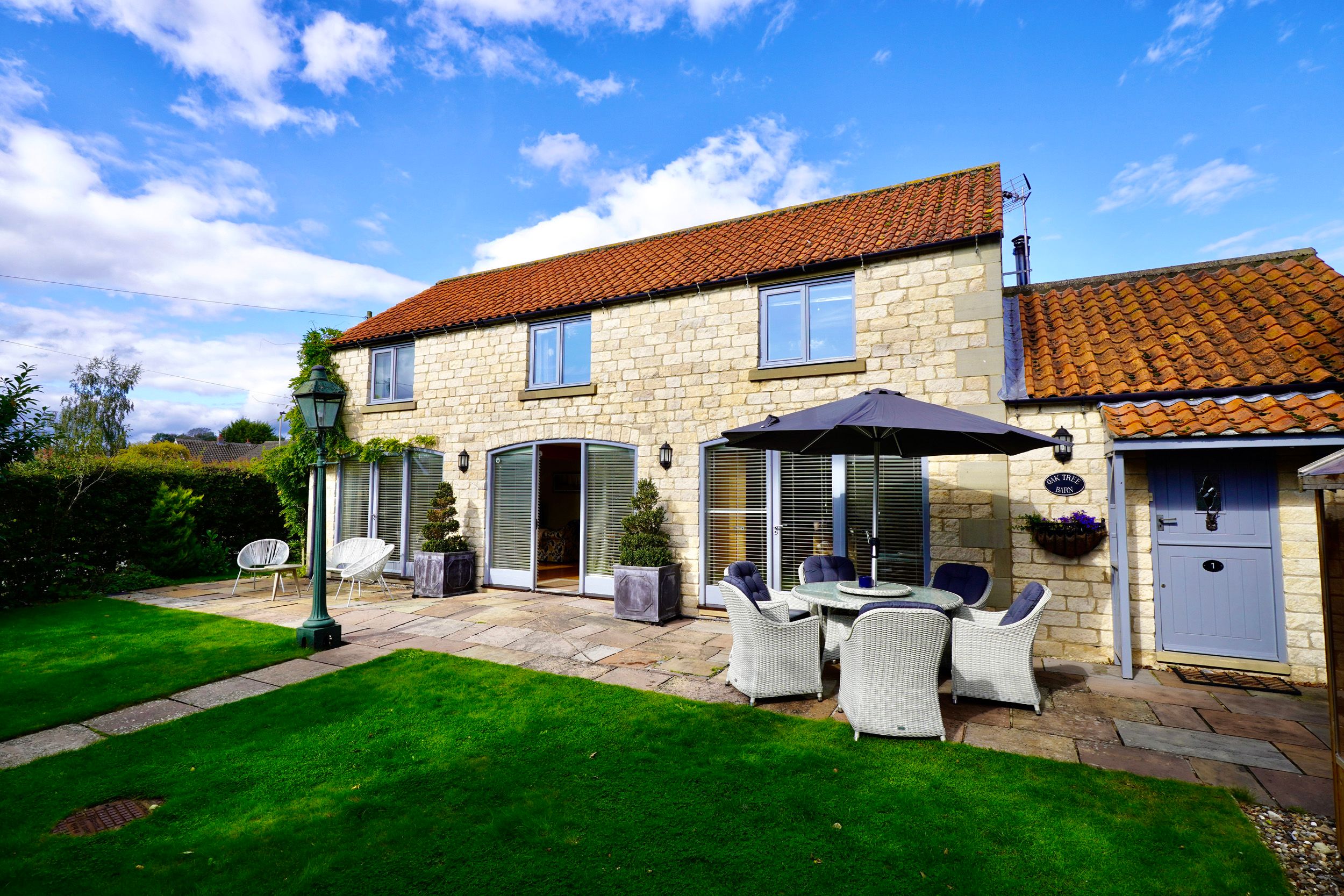 Holiday home The living areas in this cottage consist of a kitchen equipped with oven, hob, microwave and fridge/freezer, a utility with washing machine and tumble dryer, a living/dining room with TV, a selection of books and games, and dining seating for six and a sunroom with TV and woodburning stove. The bedrooms consist of a king-size with en-suite shower room, a king-size and a small double serviced by a bathroom and cloakroom. Outside there is off-road parking for two cars and a large, enclosed garden with lawn, patio and furniture. Within 0.4 miles there is a shop and a pub. One well-behaved dog welcome at a supplement, but sorry, no smoking. WiFi, fuel, power, starter for woodburning stove, bed linen and towels are all included in the price. Oak Tree Barn is a wonderful setting for a getaway in North Yorkshire. Note: This property sleeps six, but the double room houses a small double bed. Note: Please check dog breed with owner.