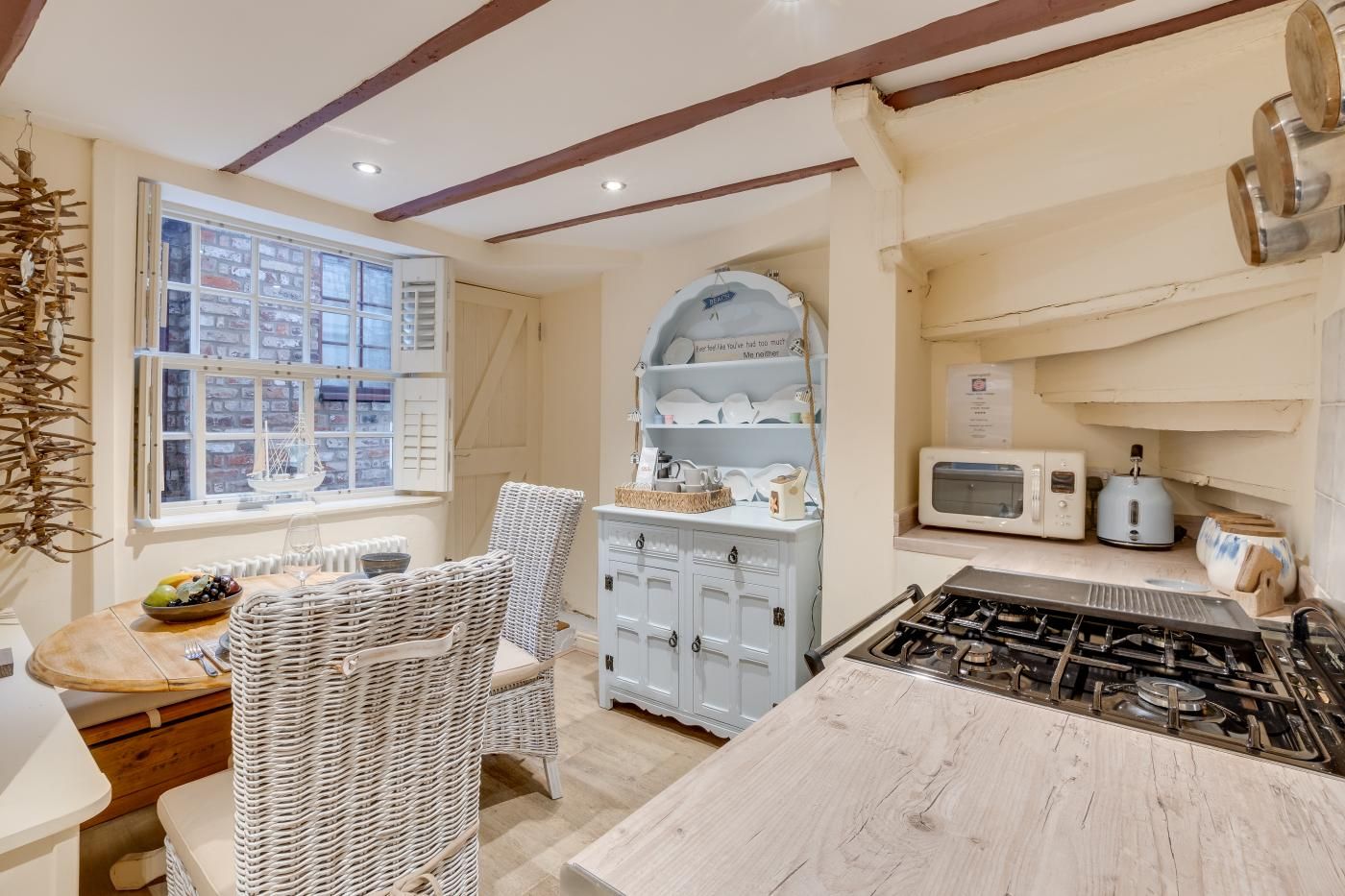 Unwind in this elegant and traditional cottage with wooden beamed ceilings, lovingly decorated interiors and a tranquil patio with flower beds and a bistro set for dining alfresco.