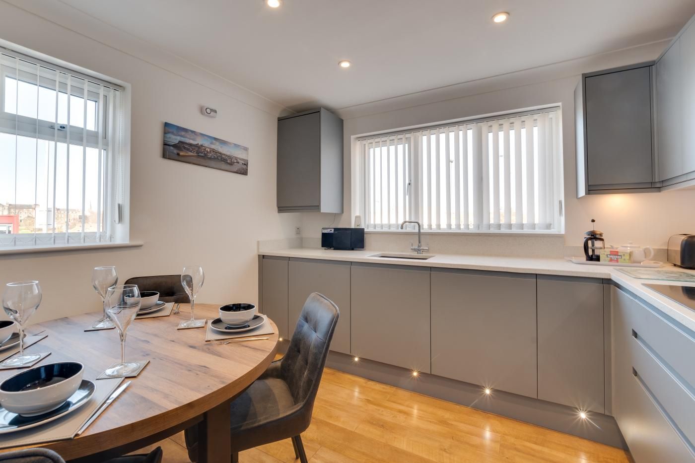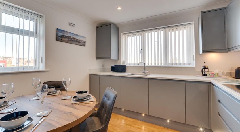 This stylish holiday home boasts glorious views across Whitby’s harbour, towards the evocative ruins of Whitby Abbey.