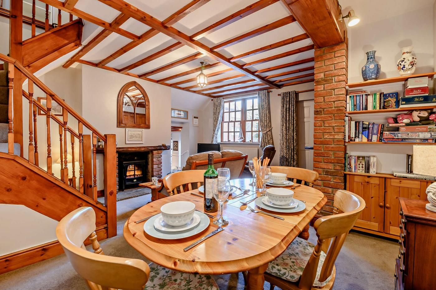 Step inside to find a bright open-plan lounge/diner with a beamed ceiling, wooden furnishings and neural-toned decor.