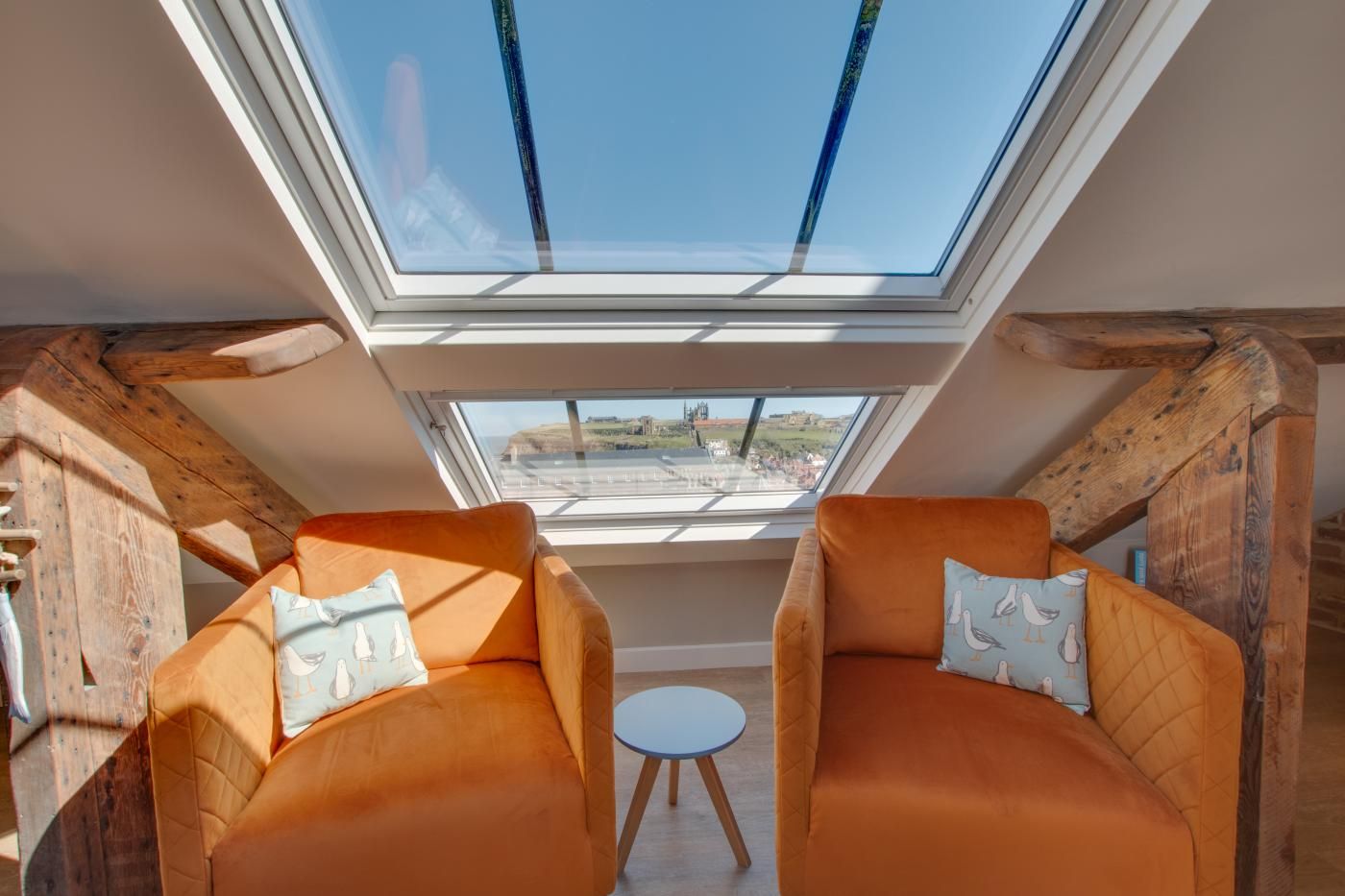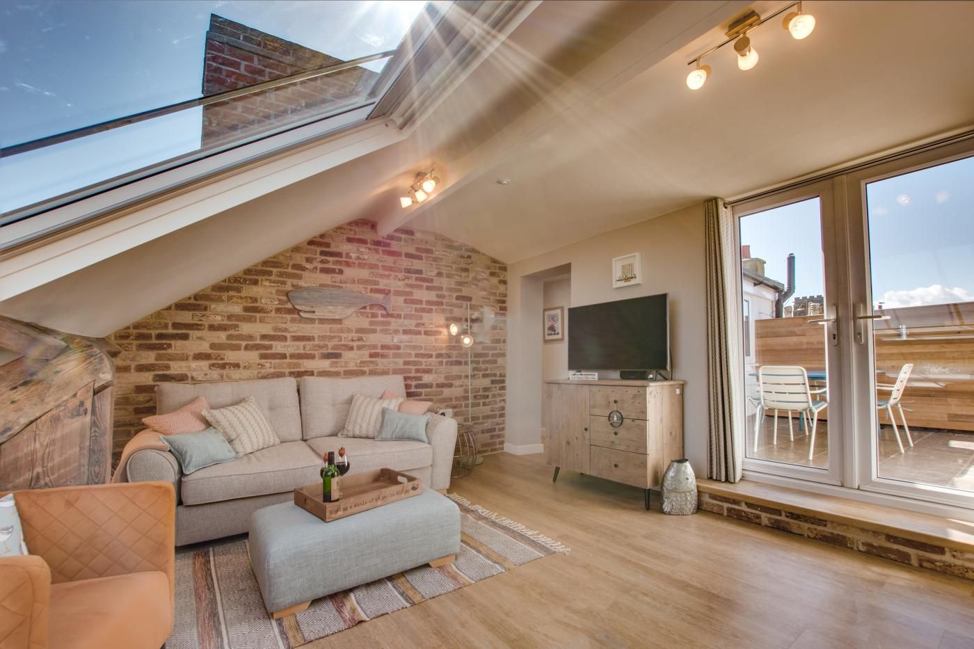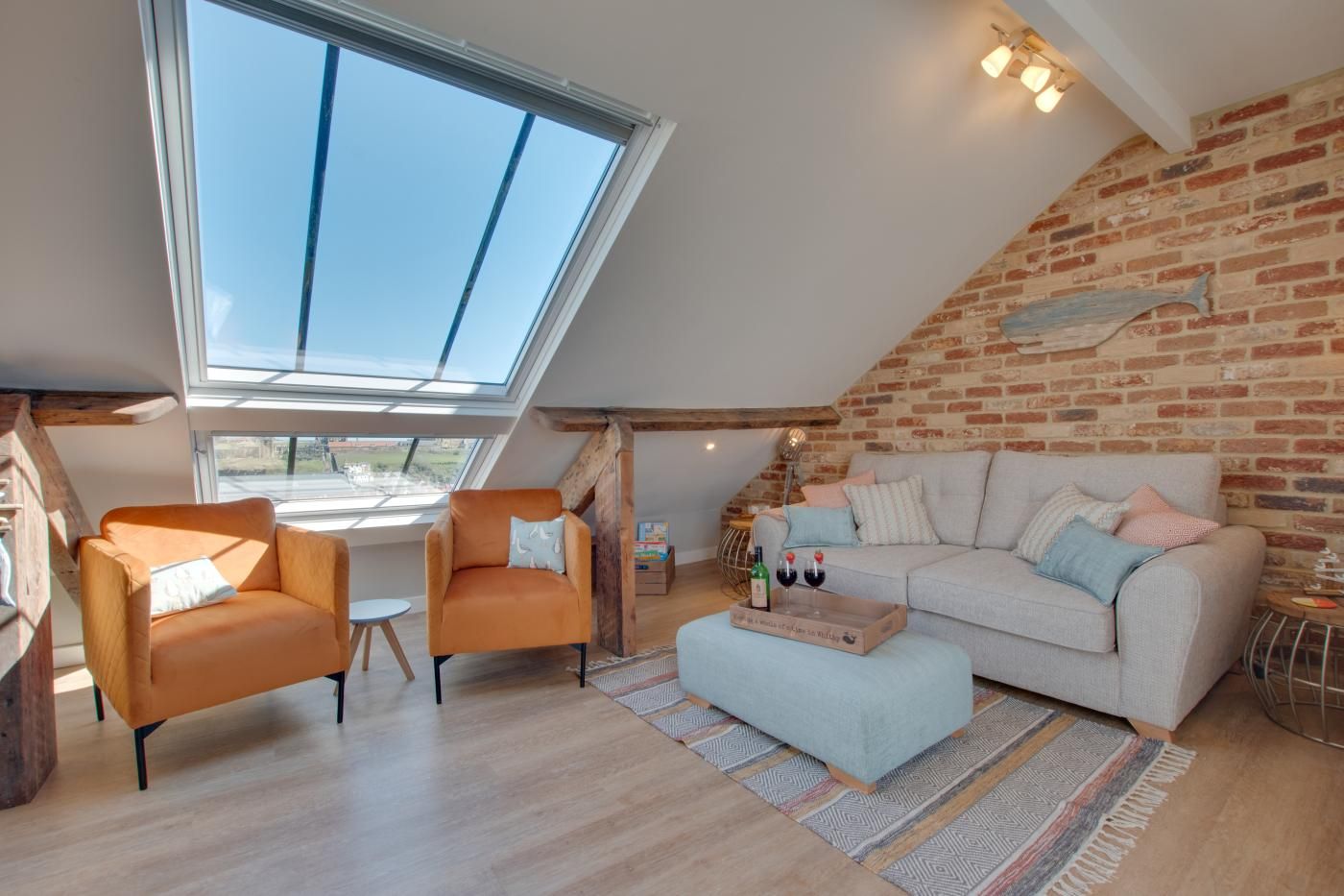 An exquisite top-floor apartment with a wood-panelled rooftop oasis, located in a prime location within the picturesque town of Whitby.