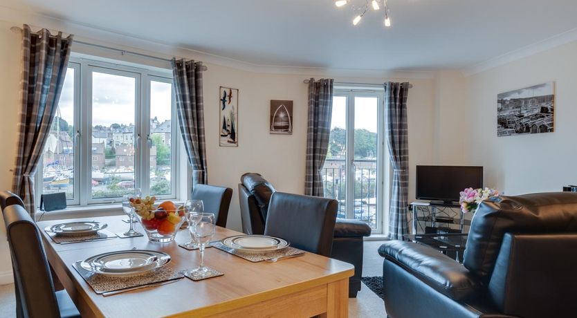 A contemporary first-floor apartment within the Whitehall Landing complex on the banks of the River Esk, around 0.