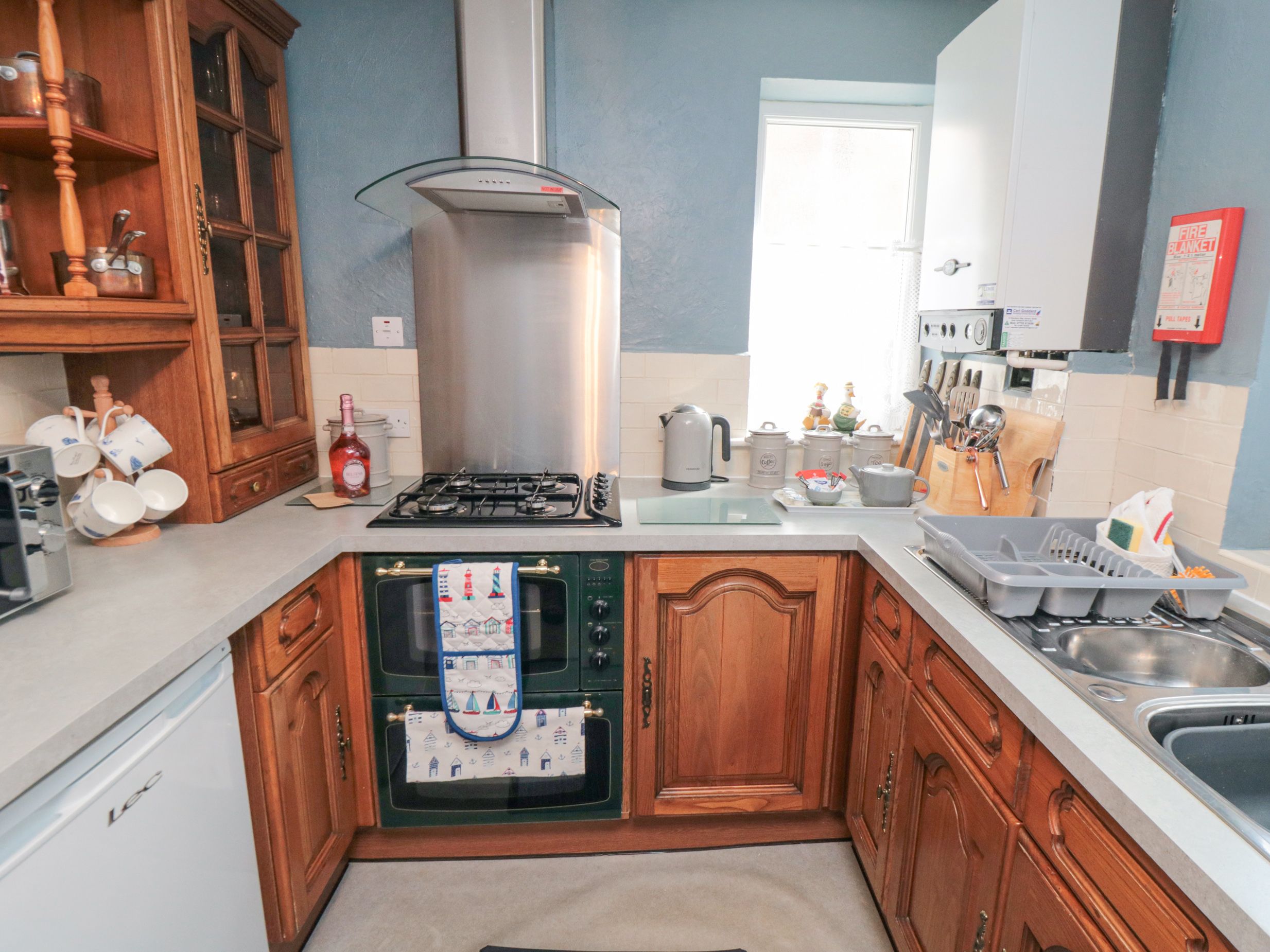 Three bedrooms: 1 x king-size, 1 x double, 1 x twin (only suitable for 2 children). Bathroom with corner bath, walk-in shower, basin and WC. Kitchen. Living/dining room with gas fire.