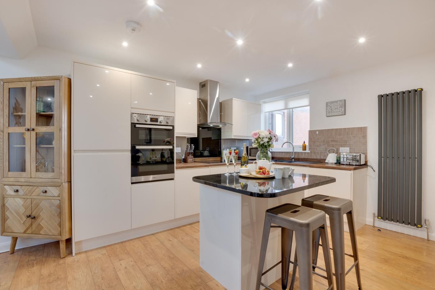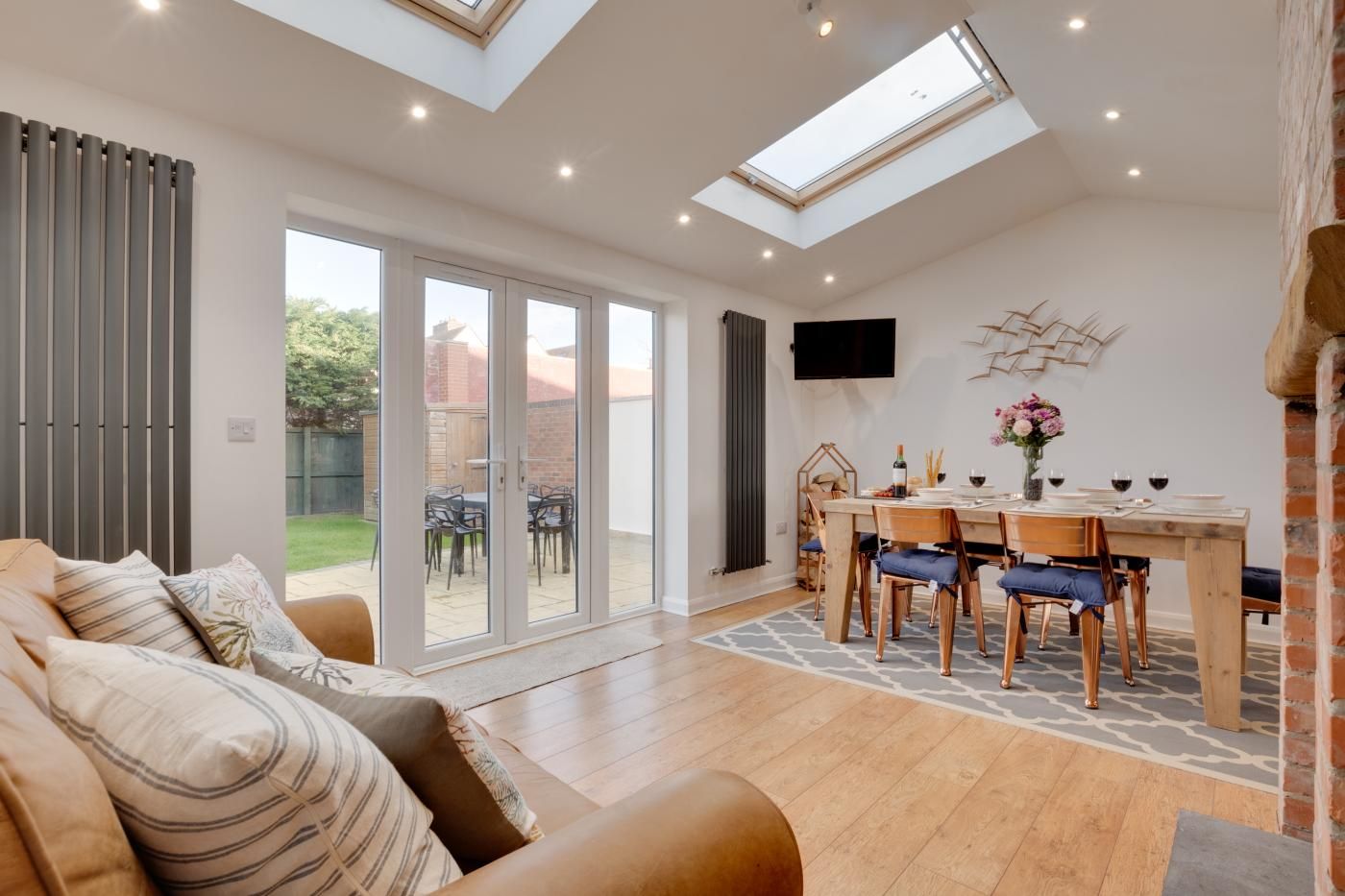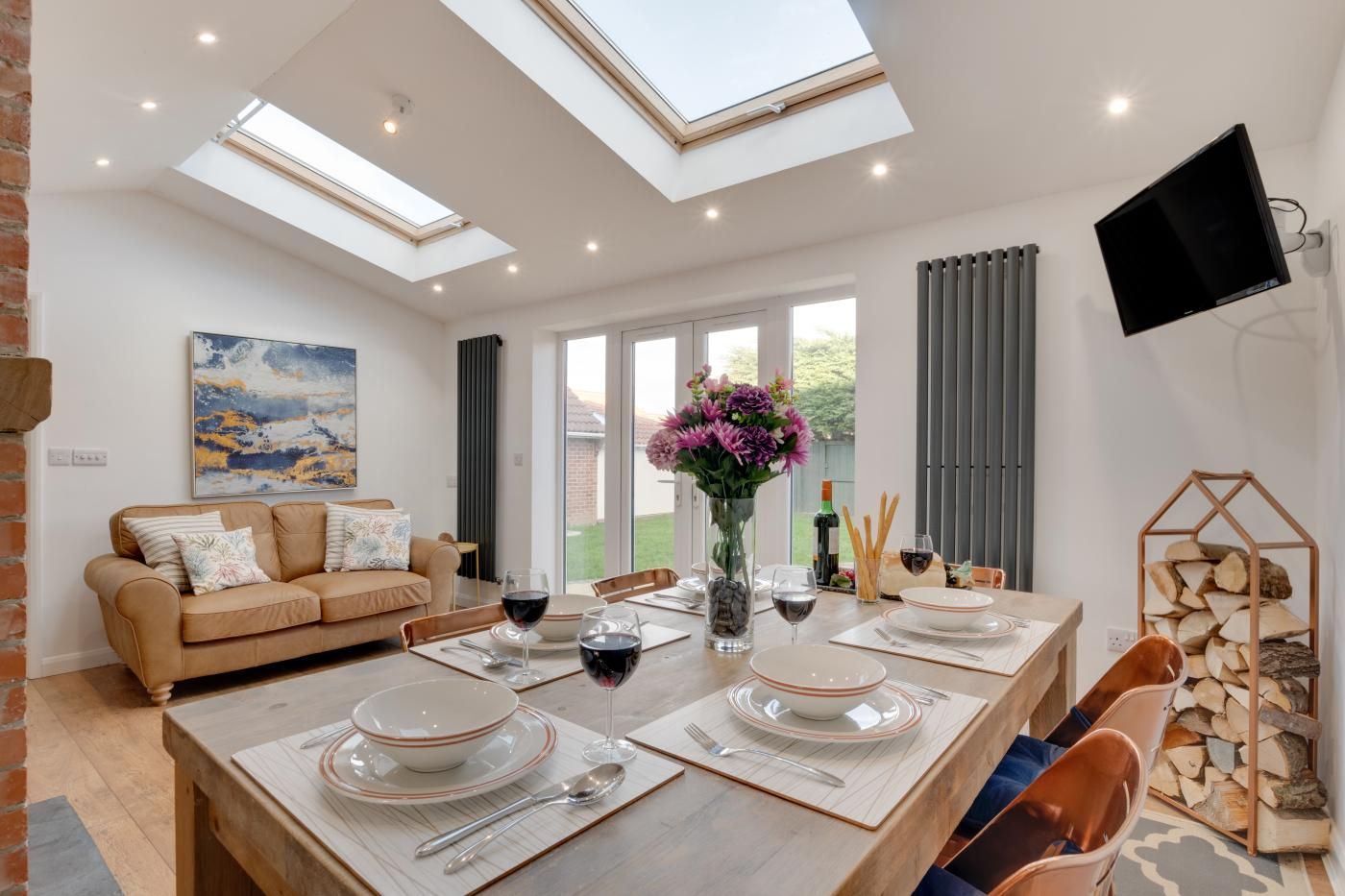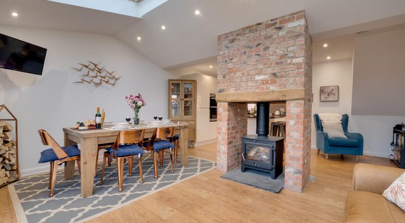 Spend quality time with your family or friends plus two canine companions in the spacious open-plan living area with a double-sided wood burner inside an exposed stone fireplace, doors that open up onto the garden and a large dining table. Discover the delights of Whitby, relax on the beach or explore the surrounding North York Moors National Park.