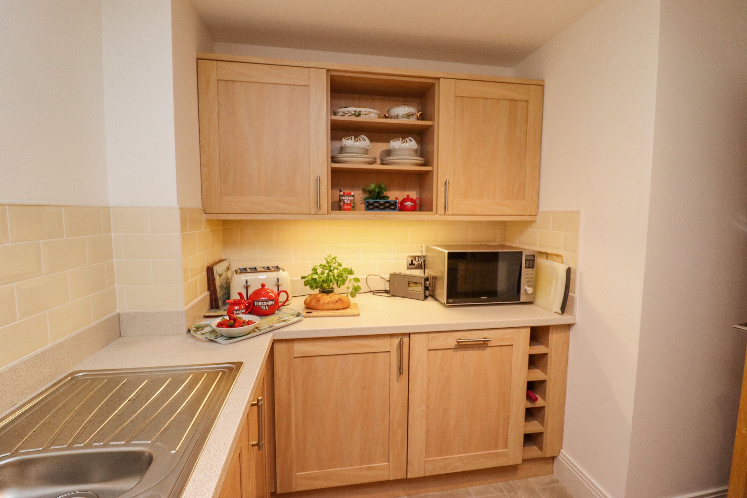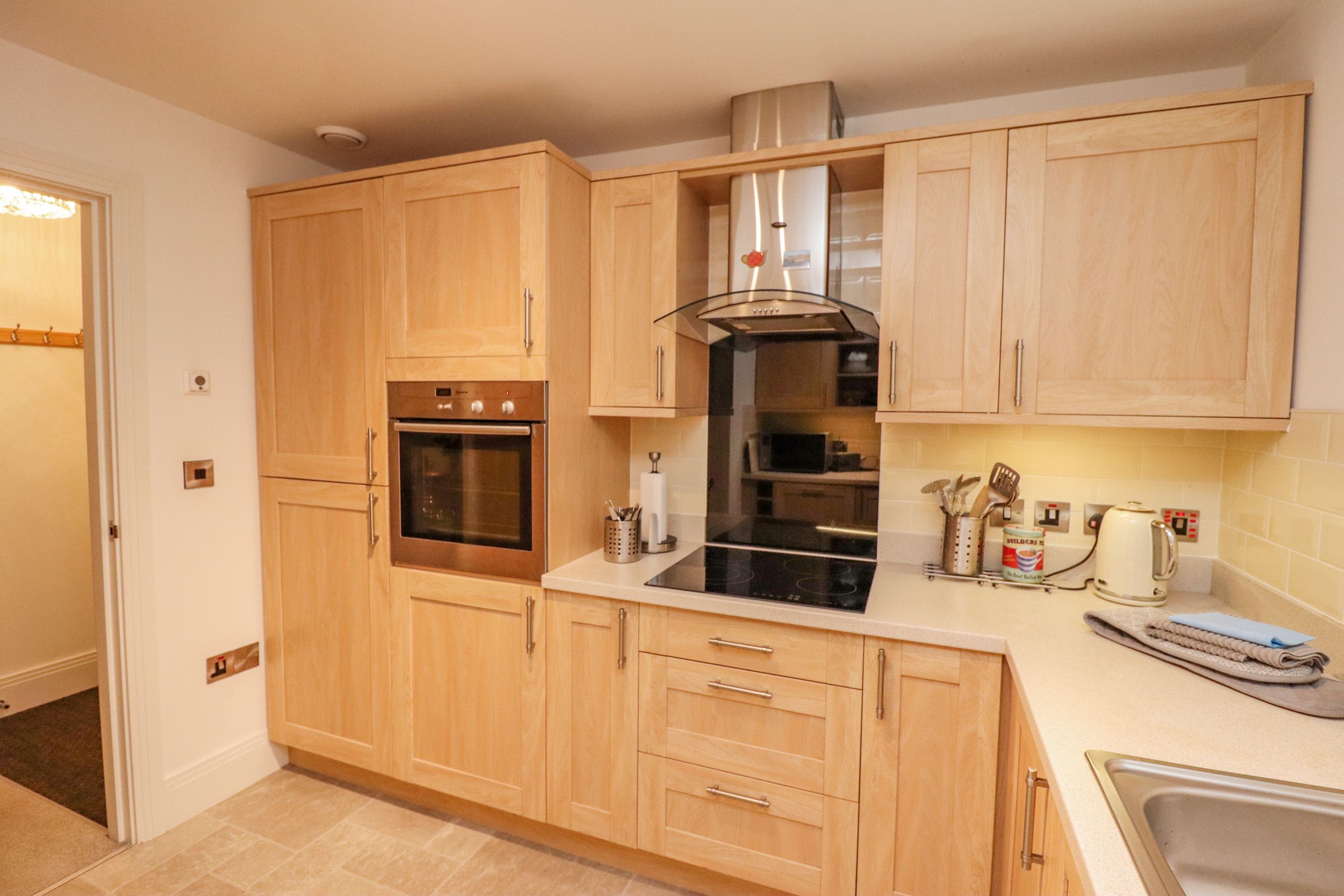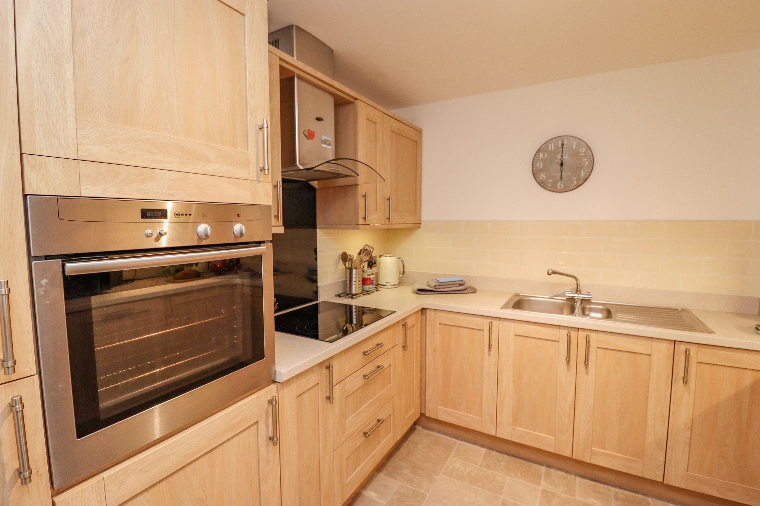 Holiday home The living areas in the property consist of a kitchen with electric oven and hob, microwave, fridge, washer/dryer, dishwasher, and a living/dining room with dining seating for four and a Smart TV. There is 1 King bedroom with TV and en-suite shower room and 1 twin room ,along with a bathroom. Outside, there is a balcony with patio and furniture, as well as off-road parking for 1 car in space number 11 in the underground car park. Within 0.5 miles, you will find a shop, and within 0.3 miles, a pub, and please note that this is a non-smoking property. WiFi, fuel, power, bed linen and towels are all included in the price. Pets are not permitted. Highchair and travel cot available. For your next coastal getaway, choose Above & Beyond. Note: Lift access is available