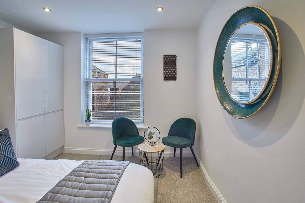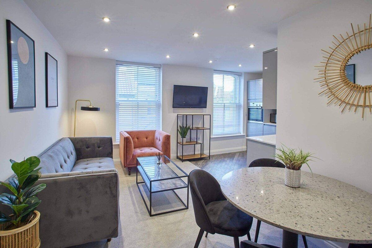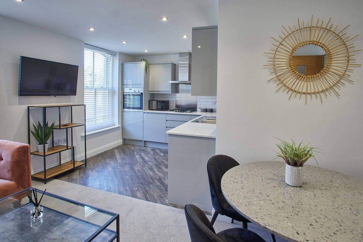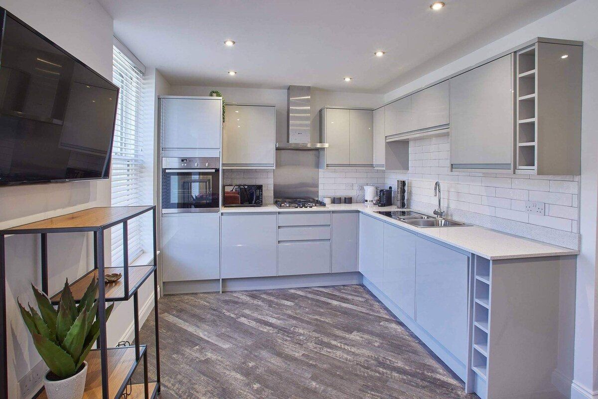 Looking out over the chimneys of the seaside town, this modern apartment in Whitby's historic Flowergate district is one we love for its stylish, contemporary interiors, enlivened by just a touch of colour. Relax in the light-filled living area before cooking a feast from fresh, local seafood in the sleek kitchen. Inviting suede sofas are great for a morning coffee while planning your day's adventures – you'll find your central location is ideal for discovering the charming town on foot. The bustling harbour is just minutes away, where there are trendy waterfront restaurants and bars, and you can take a stroll past the colourful huts on Whitby Beach. Literature lovers will enjoy exploring the gothic ruins of Whitby Abbey which served as inspiration for Bram Stoker's Dracula, and counting the famous 199 steps that lead up to it.