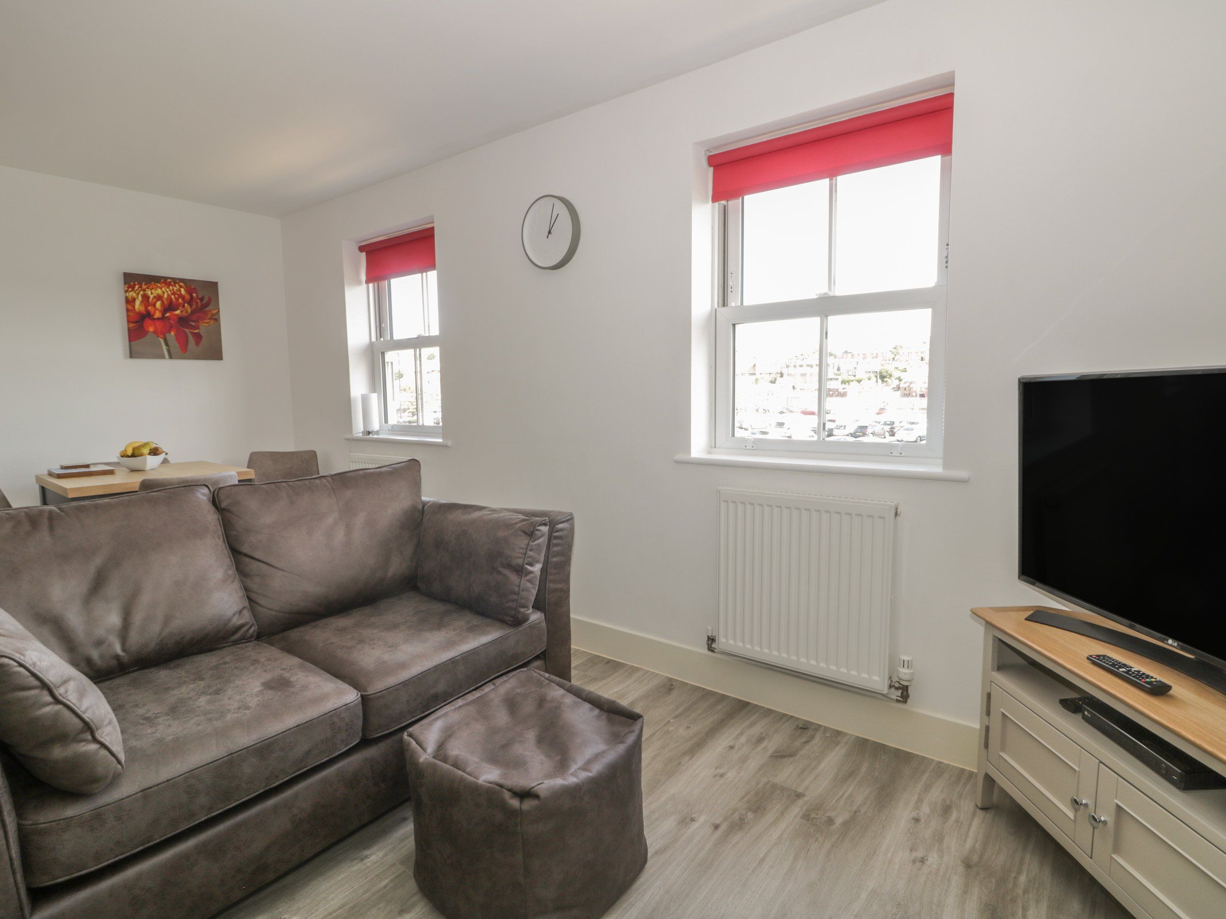 All Aboard is a modern, terraced cottage in Whitby, North Yorkshire. The cottage can sleep four people in two ground floor bedrooms; one king-size double and one twin, as well as a family bathroom which is also on the ground floor. The rest of the cottage is made up of a first floor open plan space with a kitchen, and a dining and sitting areas. There is also a first floor basin and WC. To the outside of the cottage is off road parking for one car and a front patio with furniture and a barbecue. All Aboard is in a quiet superb position, within easy reach of the coast, as well as the North Yorkshire Moors.Please note: As of January 2026 the bath with the overhead shower will be upgraded to a large walk in shower and no bath
