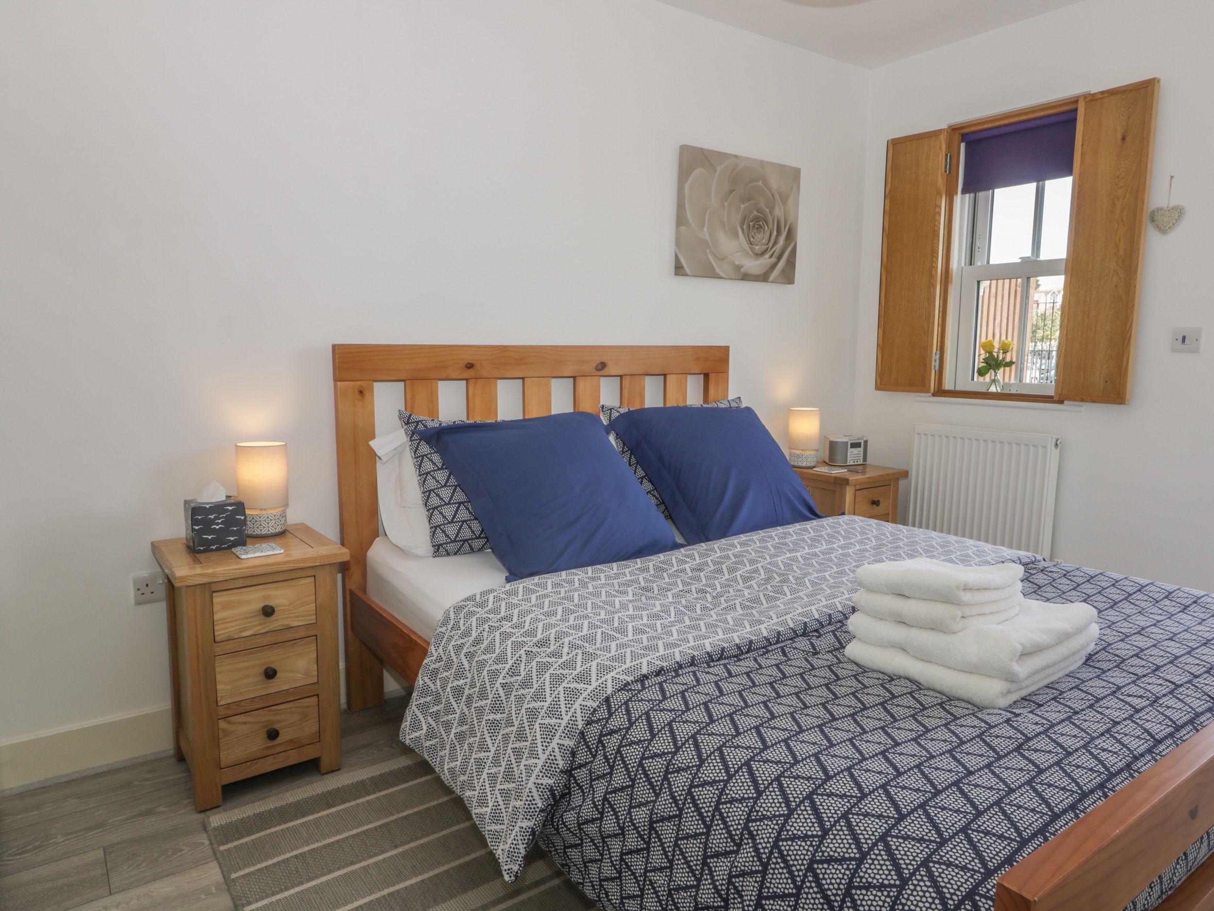 Over two floors. Two ground floor bedrooms: 1 x king size, 1 x twin with 2'6 beds. Ground floor bathroom with bath, shower over, basin and WC. First floor basin and WC. First floor open plan living area with kitchen, dining area and sitting area.