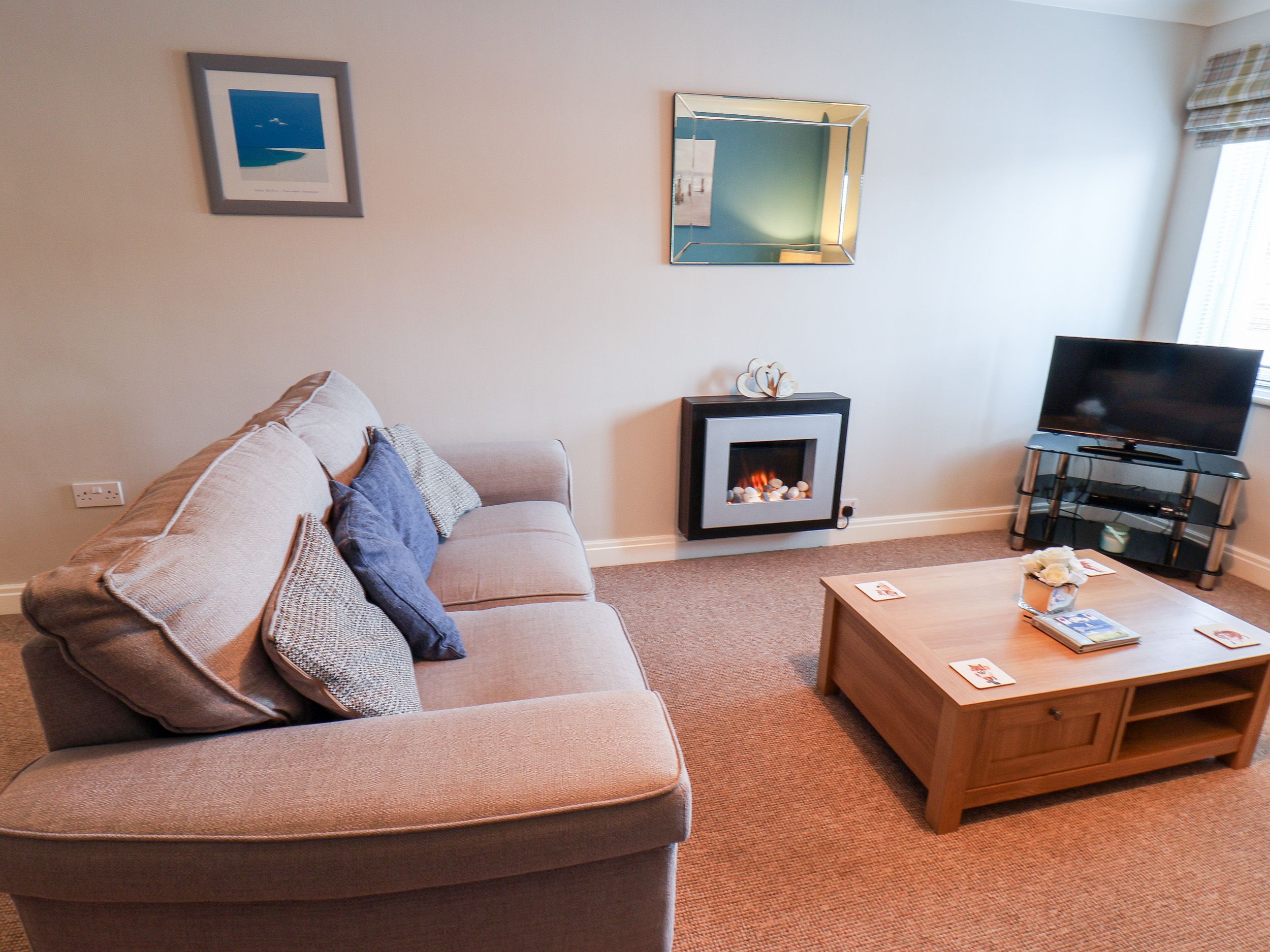 Amenities Electric central heating. Electric oven and hob, microwave, kettle, toaster, fridge, washer/dryer. 2 x Smart TV with Freeview, WiFi. Fuel and power inc. in rent. Bed linen and towels inc. in rent. Off-road parking for 1 car, visitor parking also available at first come first serve basis. Sorry, no pets and no smoking. Shop and pub 0.4 miles, beach 1.7 miles