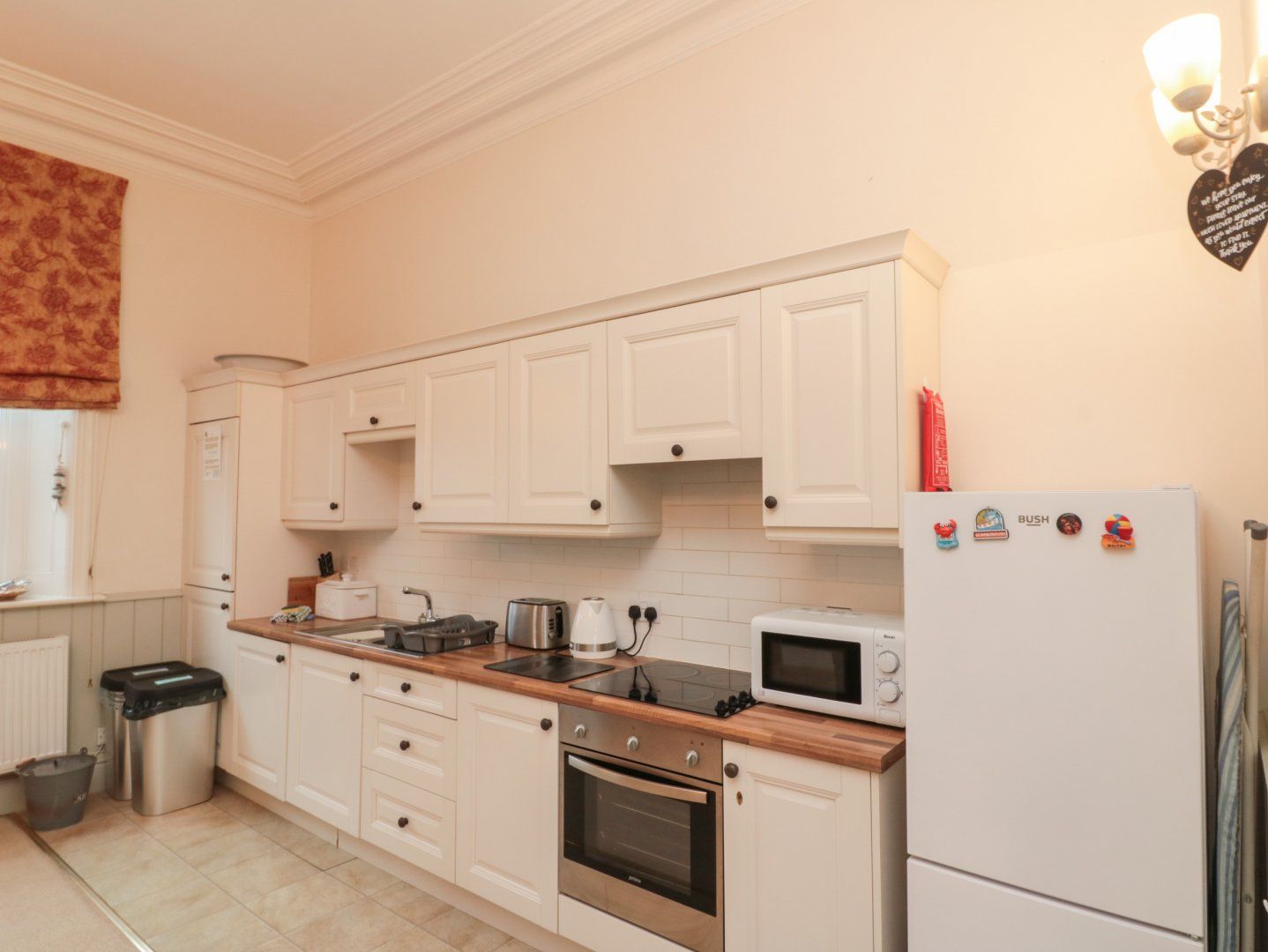 Holiday home Just three miles from the town of Whitby and set in an elevated position, this apartment has not only been finished to a very high standard but also boasts beautiful countryside views towards Whitby Abbey and the sea. High ceilings, dado rails, sash windows, and glass chandeliers still remain whilst outside a large, communal garden provides a great space in which to enjoy summer ball games or an evening drink. Local amenities and various activities are available in the near vicinity, making this an excellent holiday base for a family or a group of friends. Please Note the property only accepts a Monday and Friday Check In. Please Note. The property only accepts week long bookings at Easter and June-September