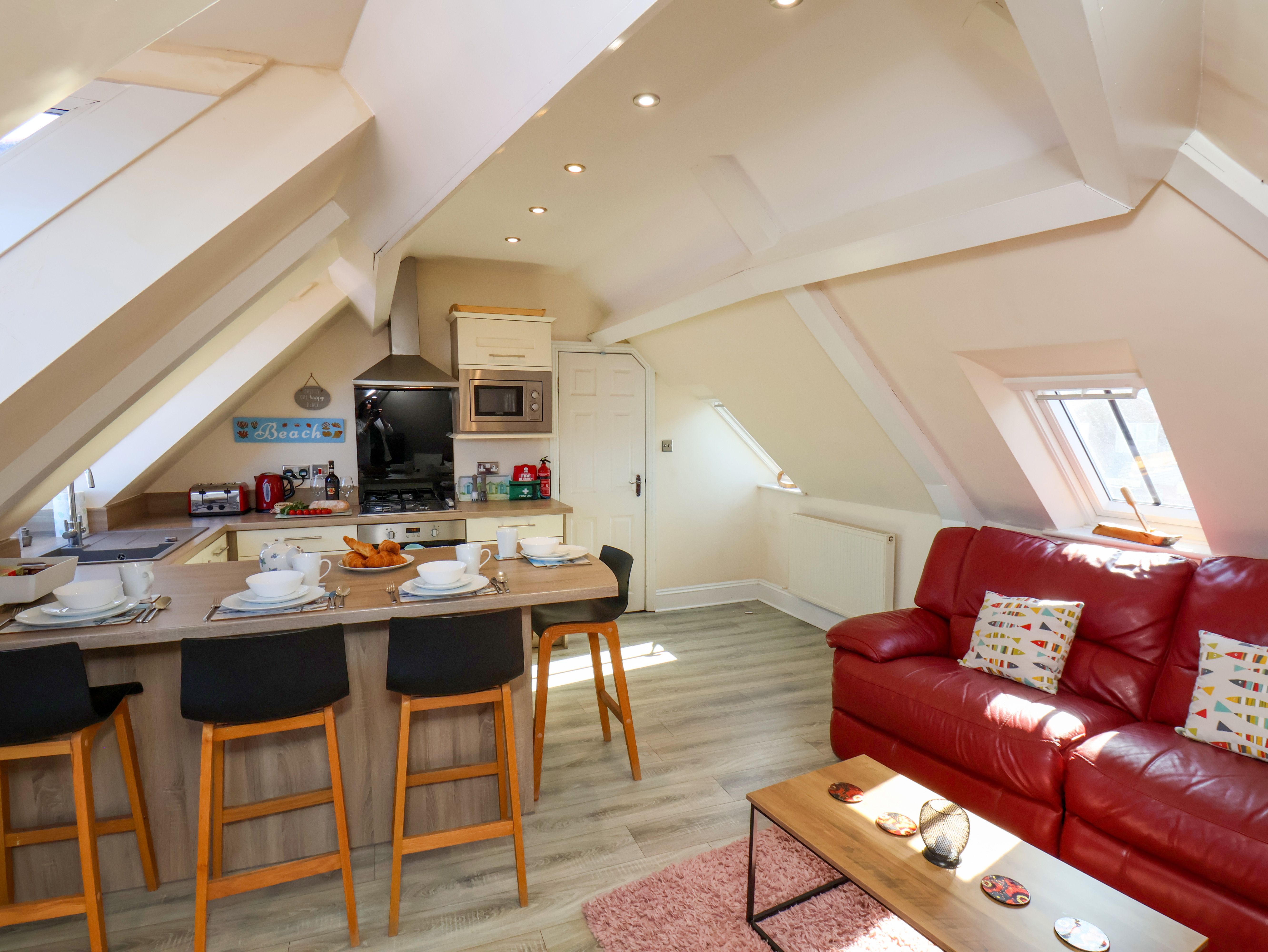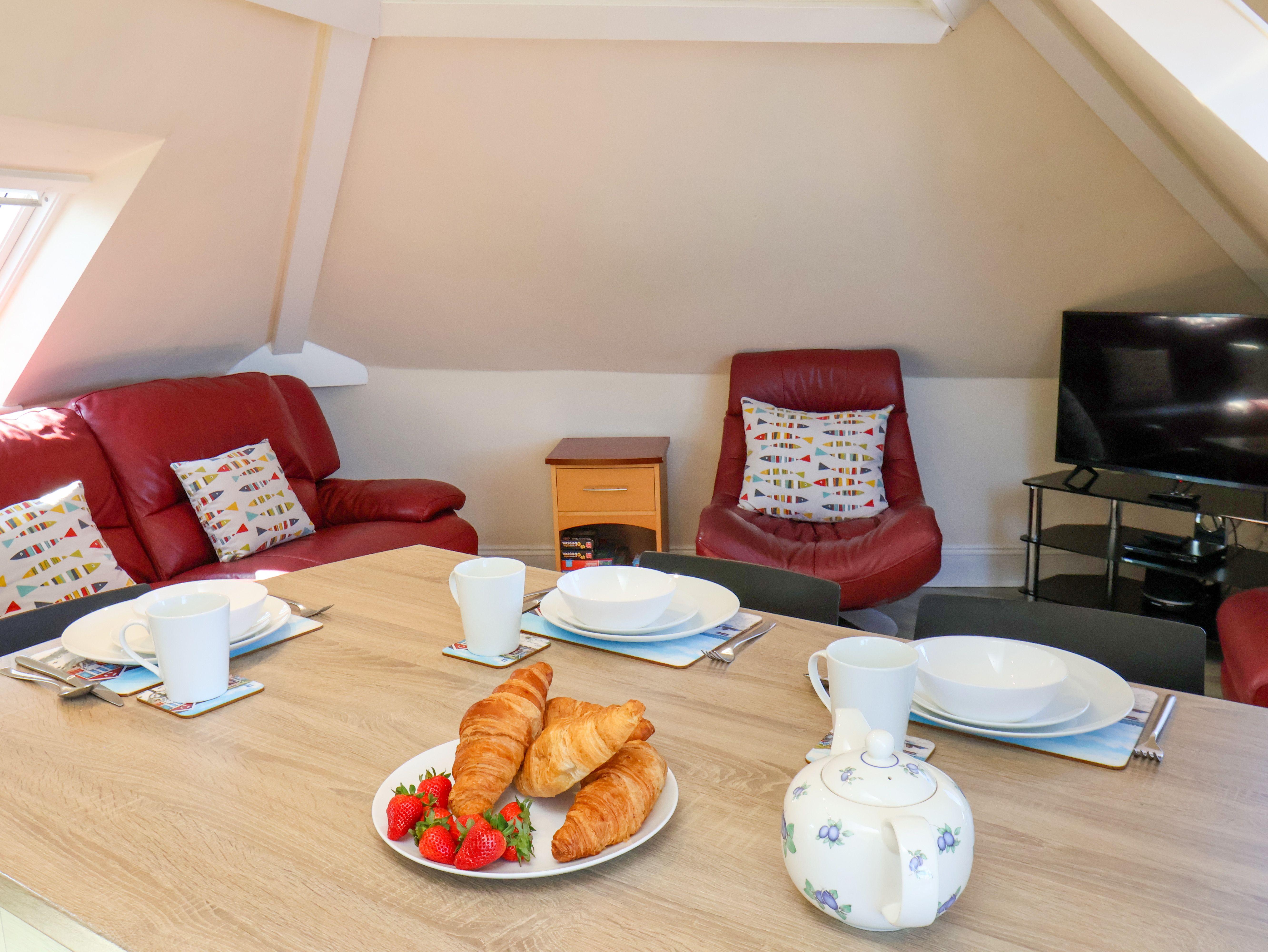 Cot and high chair available. Scratch cards are provided for 24/7 on-street parking on a first come, first served basis within 300 yards. One well-behaved pet welcome at a charge of £30.00 per stay. Beachfront Apartment is located on the ‘Battery Parade’ and is therefore surrounded by local attractions, you can enjoy views of the sea, harbour, pier and the iconic Whitby Abbey. Note: There is a children’s fair on the Battery Parade outside the property and they play music during the day.