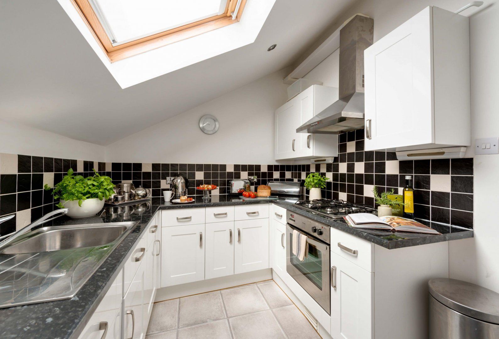There is a smart well-equipped kitchen with gas hob, electric oven, integral fridge, freezer and dishwasher, with plenty of work sufaces for preparing meals. The ground floor also has a shower room - ideal for when you come off the beach! - plus a utility/laundry room with a washing machine and dryer.