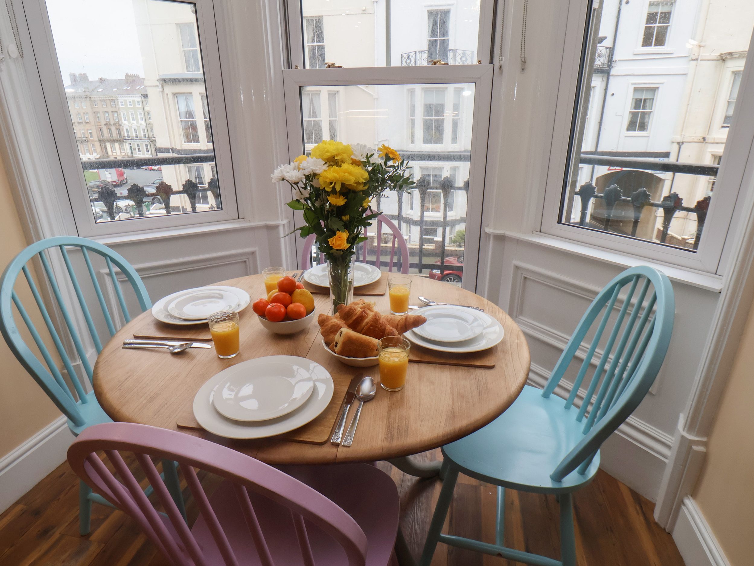 Holiday home Flat 4 is a lovely apartment in Whitby, North Yorkshire. Hosting two bedrooms: one king-size double with balcony and en-suite bathroom and one twin, sleeping a total of four guests with a family bathroom. Completing the interior is an open-plan living room with a kitchen, dining area and sitting area with a balcony. Outside has roadside parking on first-come, first-serve basis. Flat 4 is a wonderful choice for a coastal retreat for your loved ones.