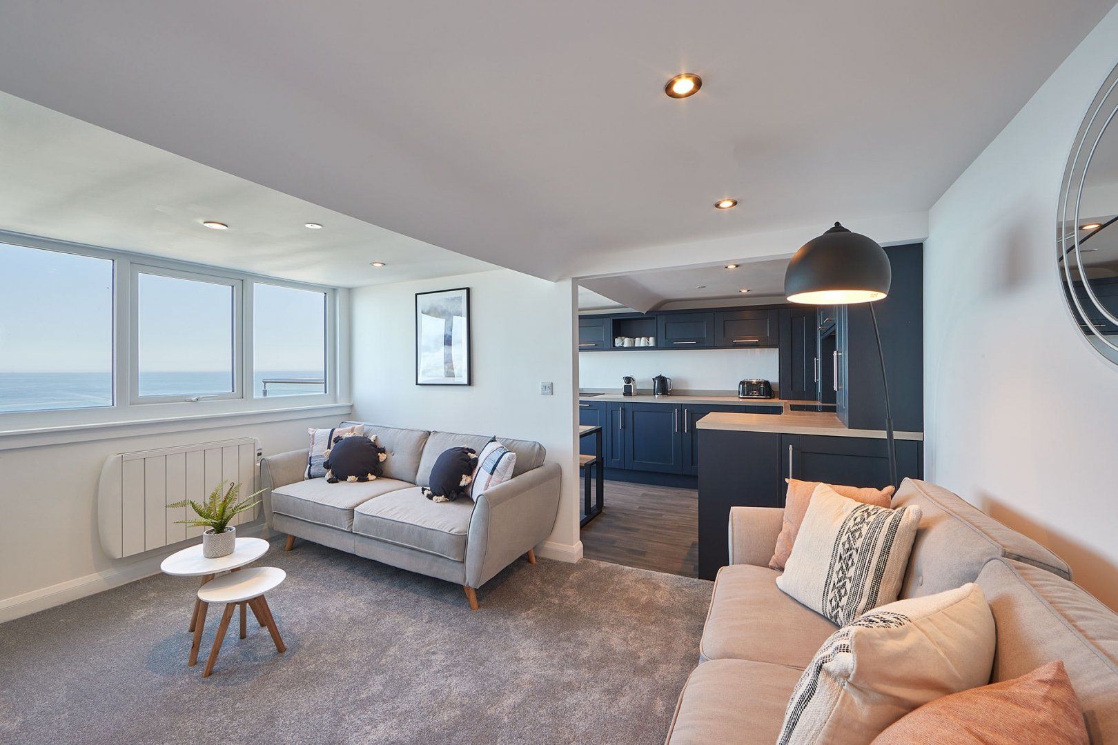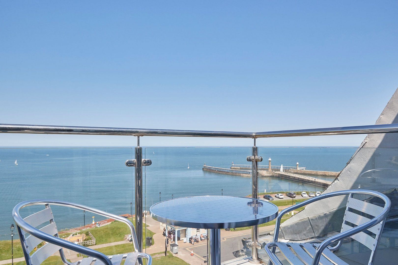 Overlooking the breezy North Sea, this enviably positioned apartment exudes tranquillity. Plush furniture in the neutral-toned living space encourages relaxing at every opportunity – curl up on the sofa with a cup of Yorkshire tea before sitting down with a platter of nibbles in the contemporary kitchen diner. If the sun is shining, take your pick from one of two balconies and bask in the warm weather.